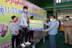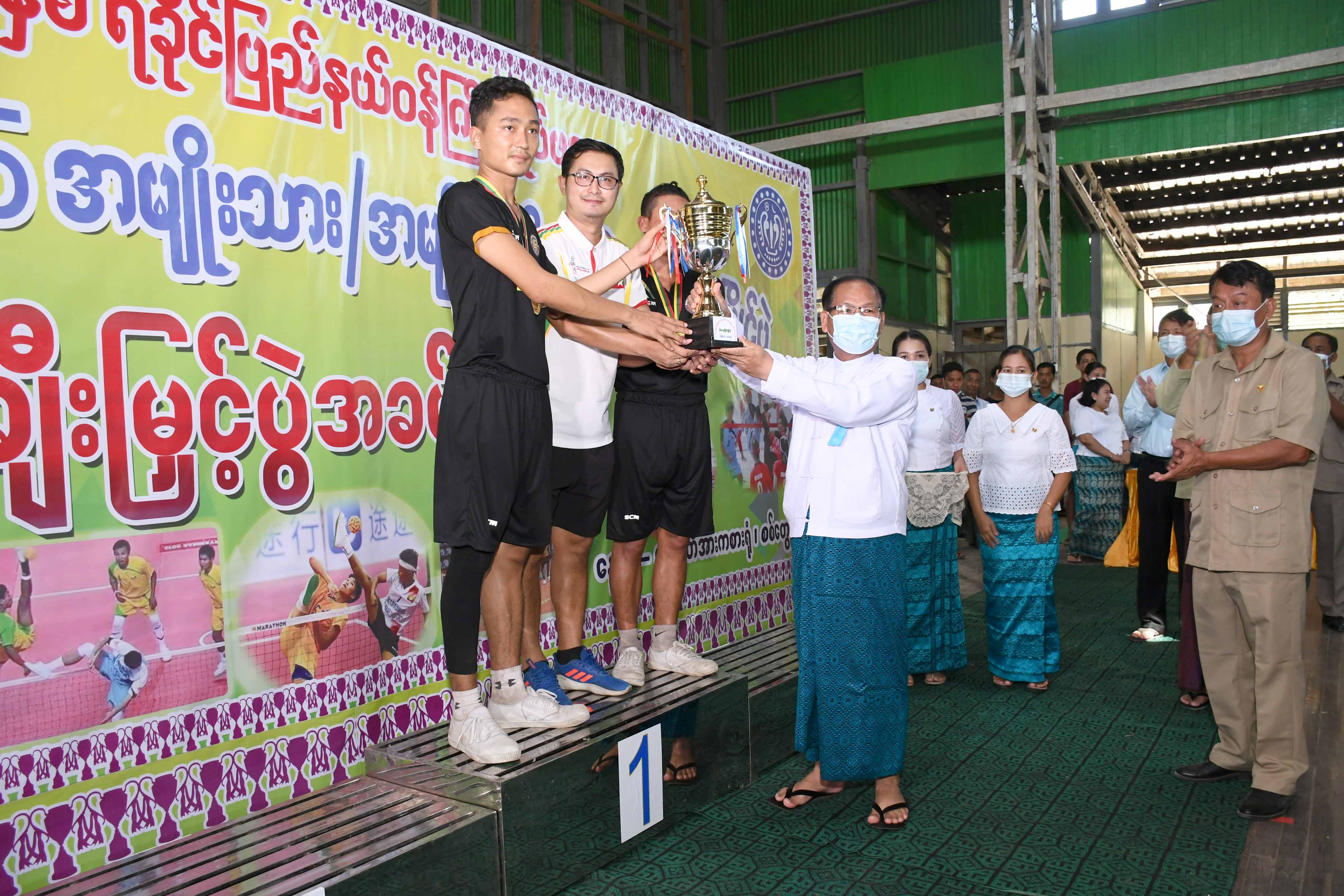 ထို့နောက် တိုင်းမှူးက ပထမဆုရရှိသော သံတွဲမြို့နယ် အမျိုးသမီးအသင်းအား တံခွန်စိုက်ဆုဖလားကို လည်းကောင်း၊ ပြည်နယ်ဝန်ကြီးချုပ်က ပထမဆုရရှိသော စစ်တွေမြို့နယ် အမျိုးသားအသင်းအား တံခွန်စိုက်ဆုဖလားကို လည်းကောင်း ပေးအပ်ချီးမြှင့်ကြသည်။