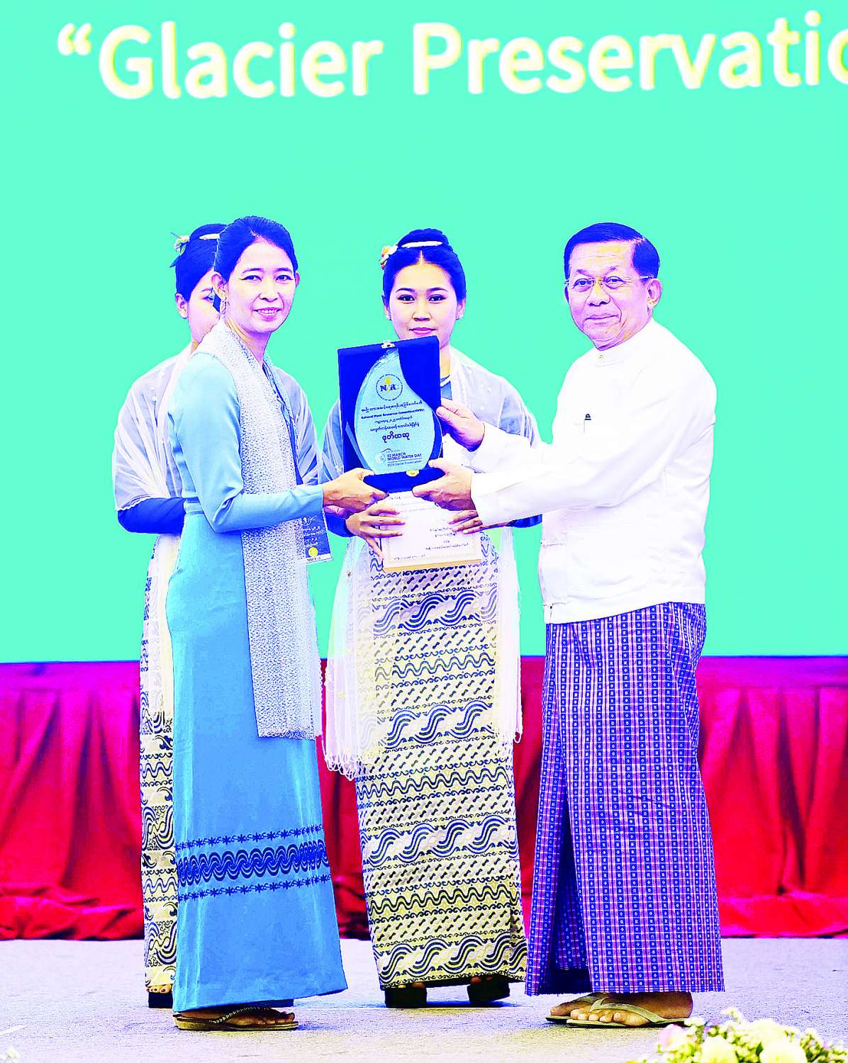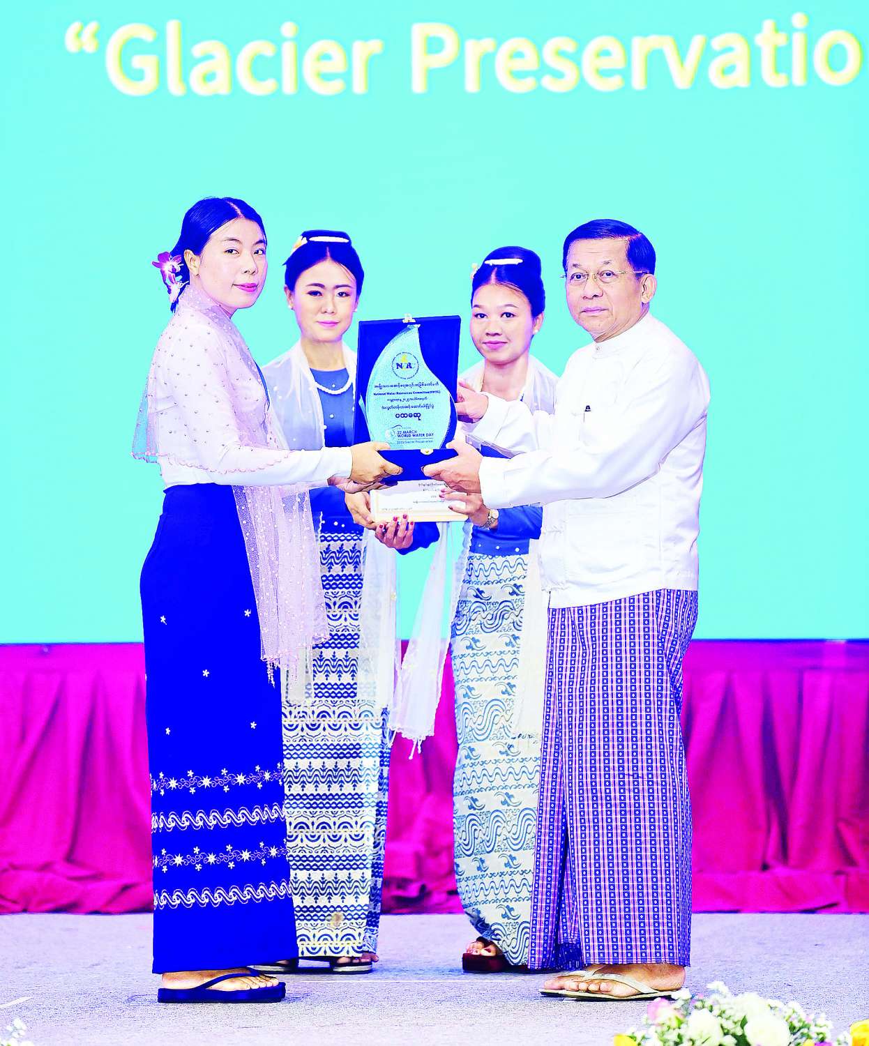 ထို့နောက် နိုင်ငံတော်စီမံအုပ်ချုပ်ရေးကောင်စီဥက္ကဋ္ဌ နိုင်ငံတော်ဝန်ကြီးချုပ်က ကမ္ဘာ့ရေနေ့ ၂၀၂၅ အထိမ်းအမှတ်အလွတ်တန်းအဆင့်ဆောင်းပါးပြိုင်ပွဲတွင် ပထမ၊ ဒုတိယနှင့် တတိယ ဆုရရှိခဲ့ကြသူများကို ဆုများပေးအပ်ချီးမြှင့်သည်။