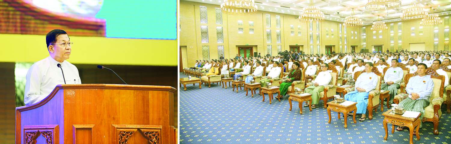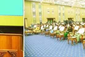 ထို့အပြင် ဧရာဝတီမြစ်၊ ချင်းတွင်းမြစ်၊ စစ်တောင်းမြစ်နှင့် သံလွင်မြစ်တို့၏ မြစ်ဖျားမှစတင်ပြီး ပင်လယ်ထဲသို့ရောက်သည်အထိ ရေစီးနှုန်းတိုင်းတာရန်နှင့် ရေလမ်းကြောင်းအခြေအနေအပါအဝင် ရေအရင်းအမြစ်ပမာဏကို စူးစမ်းလေ့လာ ဆောင်ရွက်နိုင်ရေးအတွက် ရေအားအရင်းအမြစ်စူးစမ်းလေ့လာရေးအဖွဲ့ကို ၂၀၂၂ ခုနှစ်၊ မတ်လ (၇) ရက်တွင် ဖွဲ့စည်းပေးခဲ့ကြောင်း၊ ယင်းအဖွဲ့သည်လည်း လုပ်ငန်းတာဝန်များအကောင်အထည်ဖော်ဆောင်ရွက်လျက်ရှိပြီး ရေအားအရင်းအမြစ် စူးစမ်းလေ့လာရေးလုပ်ငန်းများ၏ တိုးတက်မှုအခြေအနေကို ပြည်ထောင်စုအစိုးရအဖွဲ့ထံ အစီရင်ခံတင်ပြလျက်ရှိကြောင်း၊ လက်ရှိအနေအထားတွင် ဧရာဝတီမြစ်၊ ချင်းတွင်းမြစ်တို့သည် လူတို့၏လုပ်ဆောင်ချက်ကြောင့် သောင်ပို့မှုများ များပြားလာပြီး ရေကြောင်းသွားလာရေးတွင် ကန့်သတ်ချက်များ များလာကြောင်း၊ ထို့ကြောင့် မြစ်ကြောင်းများထိန်းသိမ်းရေးသည် အရေးကြီးသည့်အခြေအနေရှိနေပြီး စောလျင်စွာဖြေရှင်းရန်လိုကြောင်း၊ အဓိကမြစ်များနှင့် ယင်းမြစ်များအတွင်းစီးဝင်သည့် မြစ်၊ ချောင်းများ ဘေးဝဲယာတွင် သဘာဝပတ်ဝန်းကျင်ထိခိုက်စေသည့် လုပ်ငန်းများကို ဒေသဆိုင်ရာအစိုးရ၊ အုပ်ချုပ်ရေးအဖွဲ့များက ကြပ်မတ်ရန်လိုကြောင်း၊ အဆိုပါမြစ်များသည် ကူးသန်းသွားလာမှုတွင် အဓိကျခြင်းကြောင့် ဆောလျင်စွာ သောင်တူးရှင်းလင်းနိုင်ရေး၊ ဟိမဝန္တာတောင်မှ စီးဆင်းလာသည့် ရေချိုများကို စိုက်ပျိုးရေးကဏ္ဍတွင် အကျိုးရှိစွာအသုံးချနိုင်ရေး၊ ရာသီမရွေး ရေကြောင်းသွားလာနိုင်ရေး၊ ရေအားလျှပ်စစ်ထုတ်လုပ်နိုင်ရေး၊ မြစ်ဘေး ဝဲ ၊ ယာနှင့် သက်ရောက်သည့် နေရာများစိမ်းလန်းစိုပြေလာစေရေးတို့ကို ဖြစ်ပေါ်လာစေရန် သတ်မှတ်ရှာဖွေထားသည့်နေရာများတွင် အနိမ့်တမံ (Low-Head Dam) များ ဖြစ်နိုင်သမျှ အမြန်ဆောင်ရွက်သွားရန်လိုကြောင်း။