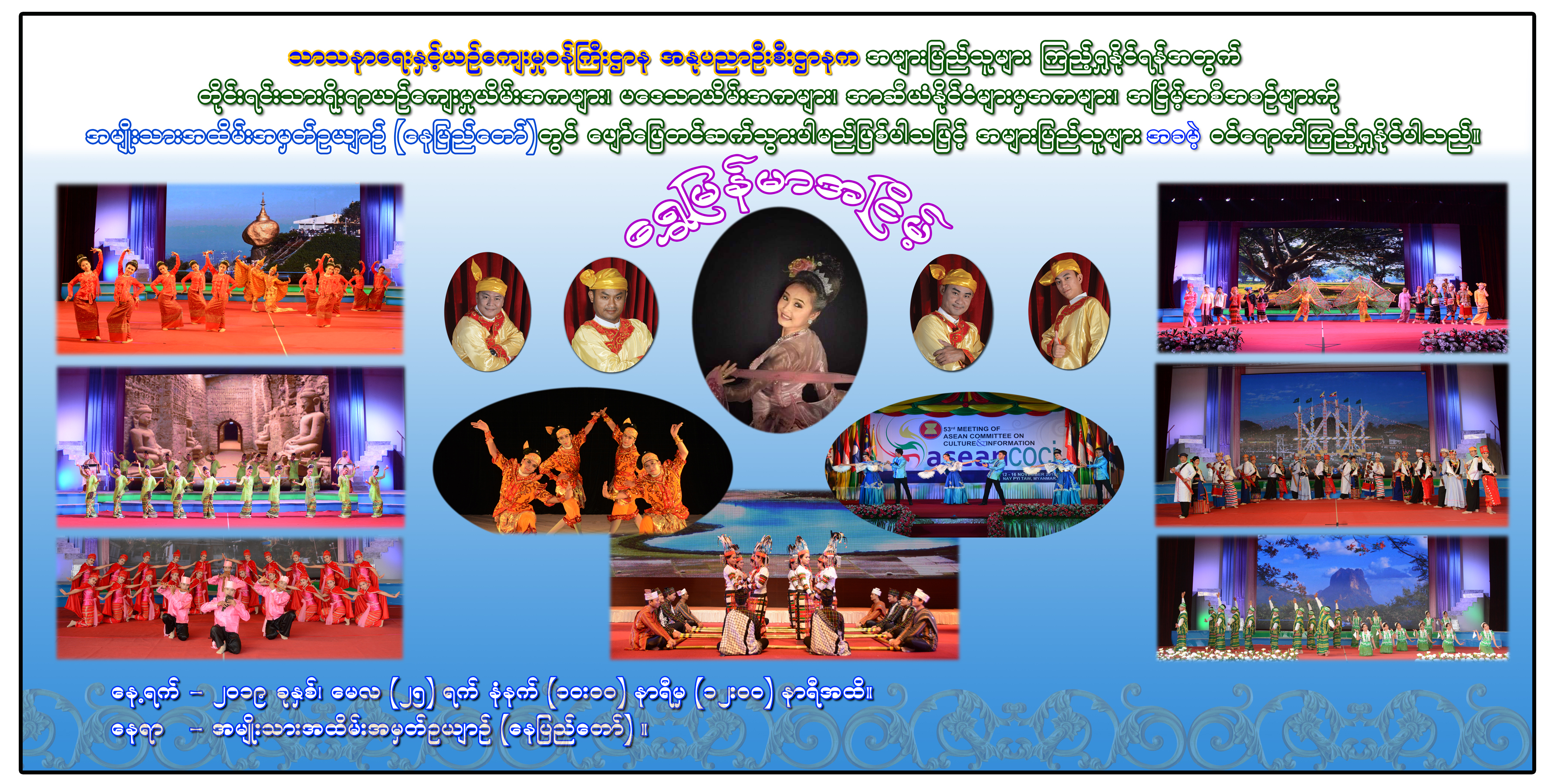 အမျိုးသားအထိမ်းအမှတ်ဥယျာဉ် (နေပြည်တော်)သို့လာရောက် ကြည့်ရှုလေ့လာကြမည့် အများပြည်သူများ ကြည်နူးပျော်ရွှင်စွာ အပန်းဖြေစေနိုင်ရန်အတွက် ၂၀၁၉ ခုနှစ်၊ မေလ ၂၅ ရက် (စနေနေ့) နံနက် ၁၀:ဝ၀ နာရီအချိန်မှ မွန်းလွဲ ၁၂ နာရီအချိန်အထိ အမျိုးသားအထိမ်းအမှတ်ဥယျာဉ် (နေပြည်တော်)၌ သာသနာရေးနှင့် ယဉ်ကျေးမှုဝန်ကြီးဌာန၊ အနုပညာဦးစီးဌာနမှ အနုပညာရှင်များက တိုင်းရင်းသားရိုးရာယဉ်ကျေးမှု ယိမ်းအကများ၊ ပဒေသာယိမ်းအကများ၊ အာဆီယံနိုင်ငံများမှ အကများ၊ အငြိမ့်တို့ဖြင့် ဖျော်ဖြေတင်ဆက်မည်ဖြစ်ပါသဖြင့် မည်သူမဆို အခမဲ့ ဝင်ရောက်ကြည့်ရှုနိုင်ကြောင်း သတင်းရရှိပါသည်။