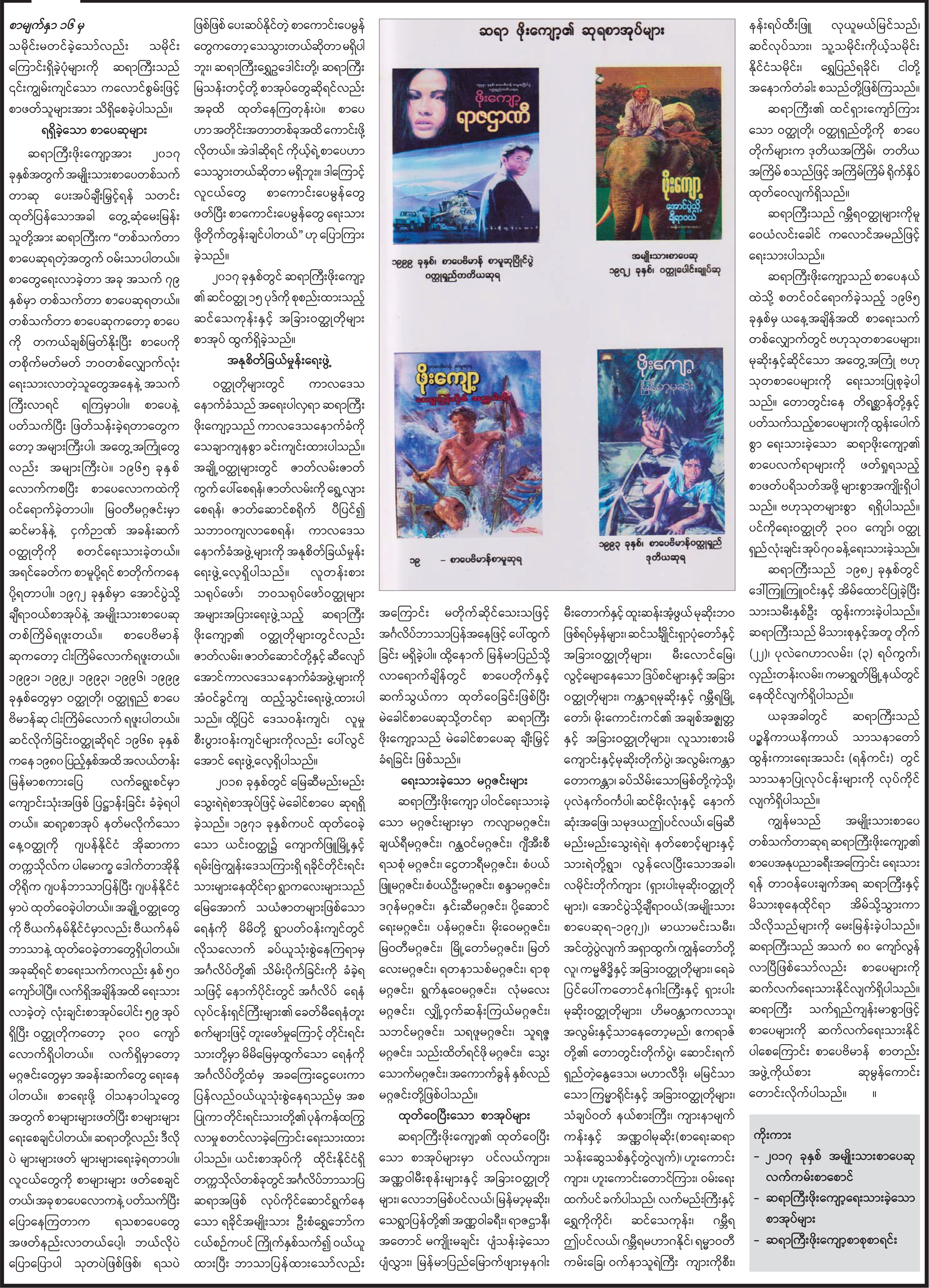 အမျိုးသားစာပေဆု၊ တစ်သက်တာဆုရှင် (စာရေးဆရာ) ဆုရ ဆရာဖိုးကျော့၏ စာပေအနုပညာရှင်ဘဝ