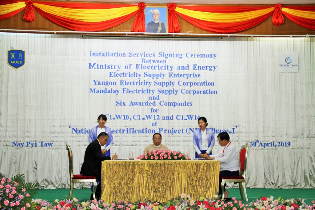 လျှပ်စစ်နှင့်စွမ်းအင်ဝန်ကြီးဌာန လျှပ်စစ်ဓာတ်အားဖြန့်ဖြူးရေးလုပ်ငန်းနှင့် ကမ္ဘာ့ဘဏ်ချေးငွေဖြင့် ဆောင်ရွက်လျက်ရှိသည့် အမျိုးသားလျှပ်စစ်ဓာတ်အားရရှိရေး စီမံကိန်းအတွက် ဓာတ်အားလိုင်း၊ ထရန်စဖော်မာတည်ဆောက်ရေး တင်ဒါအောင်မြင်သည့် ကုမ္ပဏီများ လုပ်ငန်းအပ်နှံသည့် စာချုပ်လက်မှတ်ရေးထိုးပွဲ အခမ်းအနားကို ယနေ့နံနက်ပိုင်းတွင် နေပြည်တော်ရှိ လျှပ်စစ်နှင့်စွမ်းအင်ဝန်ကြီးဌာန၊ ဝန်ကြီးရုံး အစည်းအဝေးခန်းမ၌ ကျင်းပသည်။