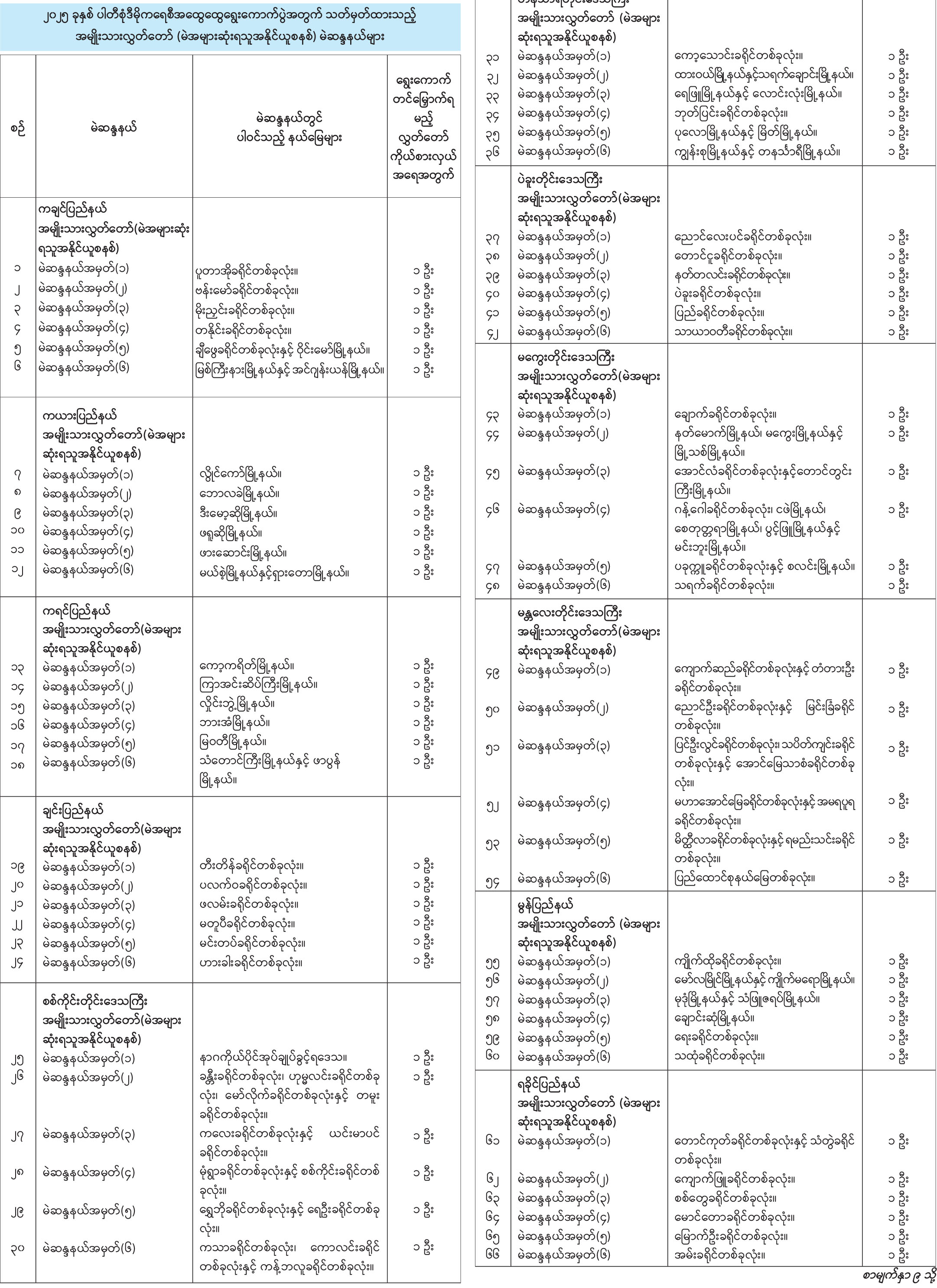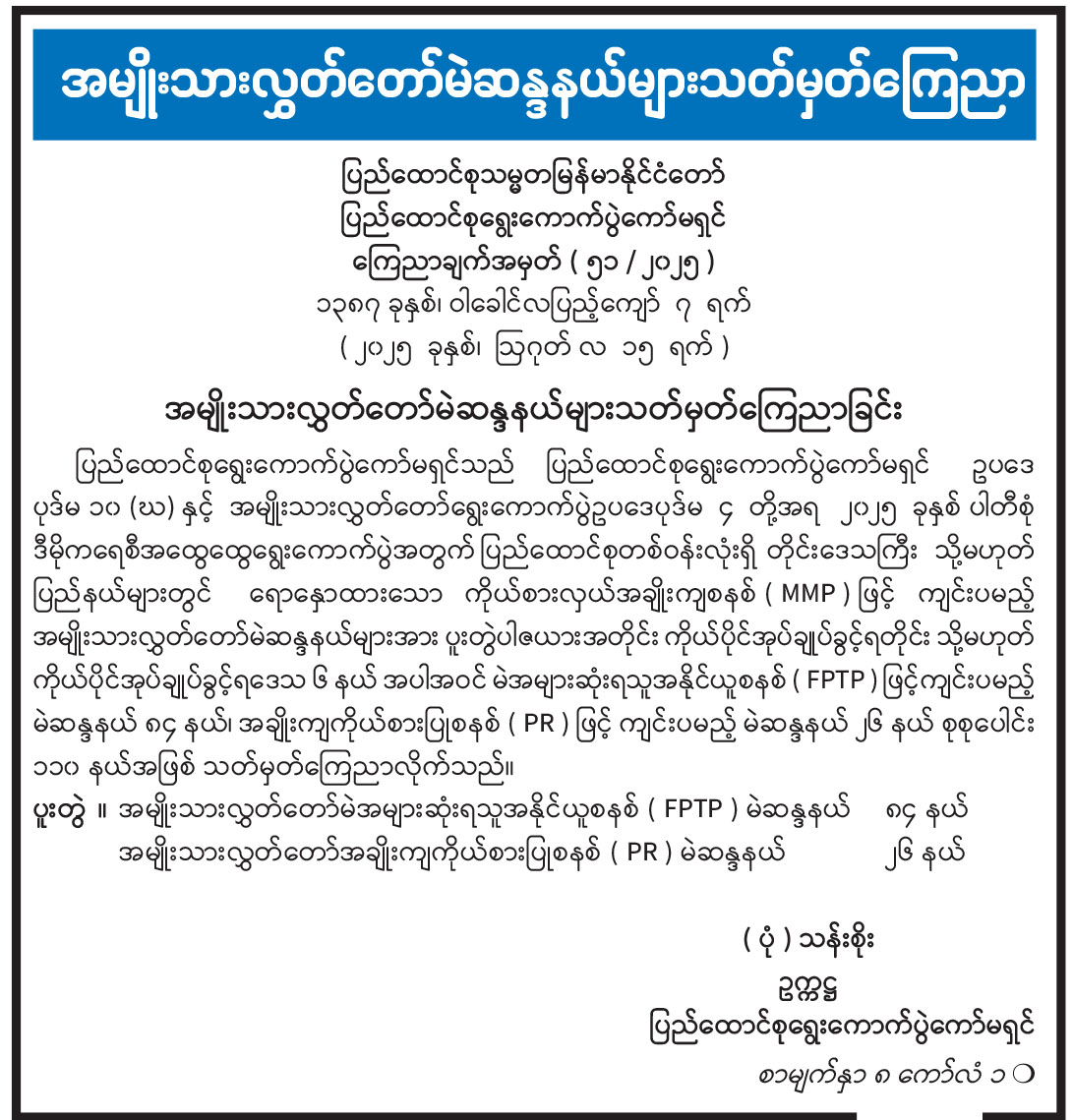 အမျိုးသားလွှတ်တော်မဲဆန္ဒနယ်များသတ်မှတ်ကြေညာ