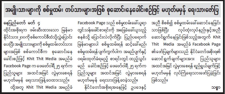 အမျိုးသားများကို စစ်မှုထမ်းတပ်သားများအဖြစ် စုဆောင်းနေခေါင်းစဉ်ဖြင့် မဟုတ်မမှန်ရေးသားဖော်ပြ
