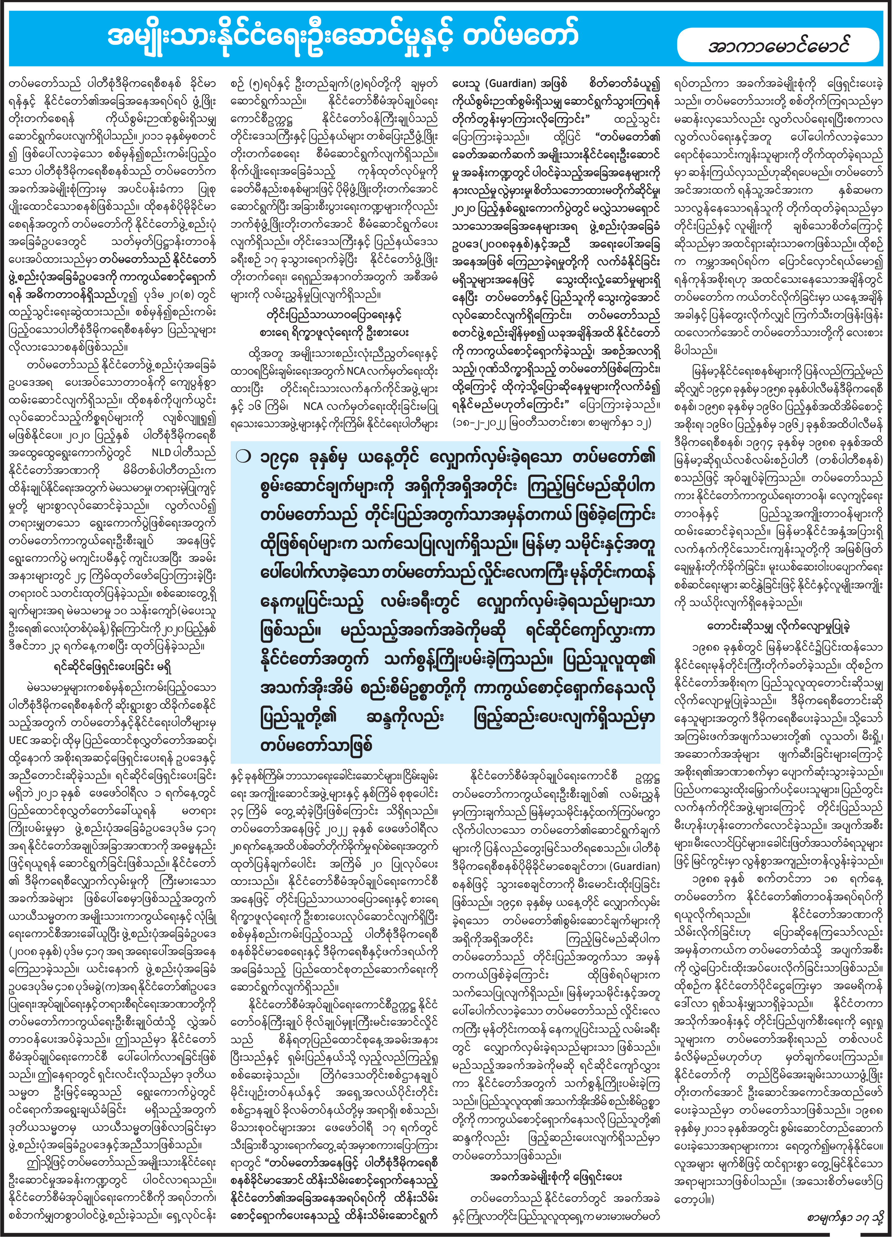 နိုင်ငံတည်ငြိမ်အေးချမ်းပြီး တရားဥပဒေစိုးမိုးမှုရှိစေရေး မိမိတို့အနေဖြင့် ဒီမိုကရေစီနည်းလမ်းဖြင့် ဆောင်ရွက်လျက်ရှိ တည်ငြိမ်အေးချမ်းပြီး တရားဥပဒေစိုးမိုးမှုရှိမှသာ ပြည်သူများ အလုပ်အကိုင်များ အဆင်ပြေချောမွေ့ပြီး နိုင်ငံဖွံ့ဖြိုးတိုးတက်လာမည်