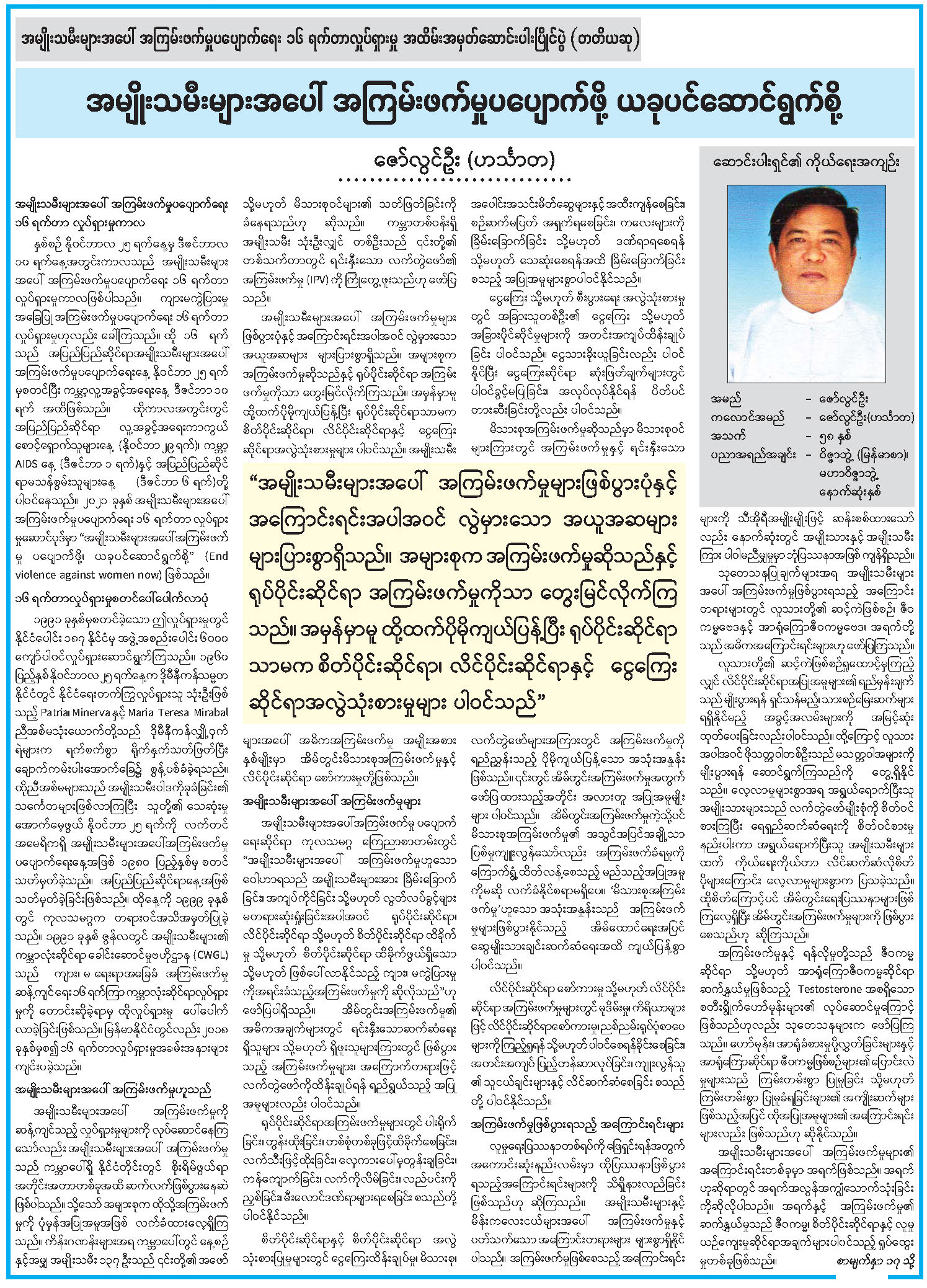 အမျိုးသမီးများအပေါ် အကြမ်းဖက်မှုပပျောက်ဖို့ ယခုပင်ဆောင်ရွက်စို့