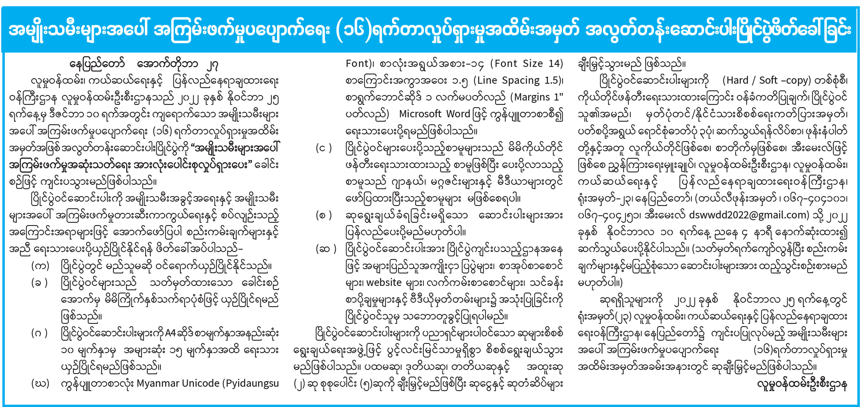 အမျိုးသမီးများအပေါ် အကြမ်းဖက်မှုပပျောက်ရေး (၁၆)ရက်တာလှုပ်ရှားမှုအထိမ်းအမှတ် အလွတ်တန်းဆောင်းပါးပြိုင်ပွဲဖိတ်ခေါ်ခြင်း
