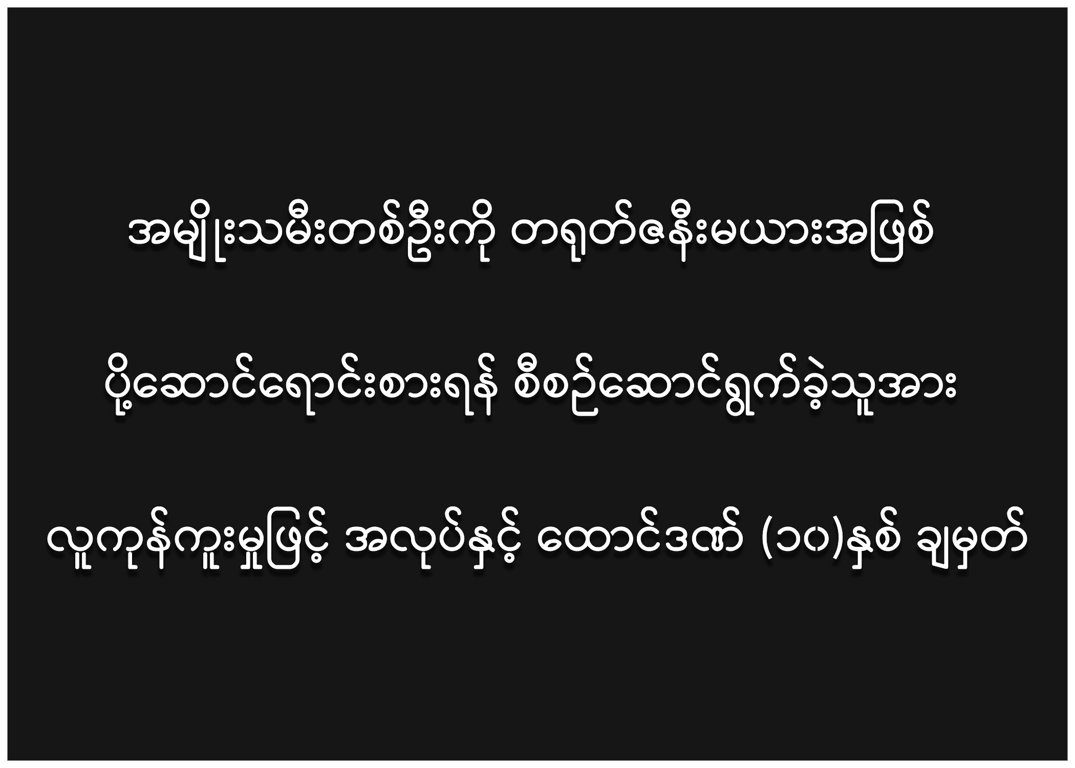 ရှမ်းပြည်နယ် မူဆယ်မြို့ ကောင်းမှုတုံရပ်ကွက် စက်မှုရပ်နေ မငြိမ်းလင်းနွယ် (ခ) ဝိုင်း မှ ရှမ်းပြည်နယ် ကွတ်ခိုင်မြို့နယ် တာမိုးညဲမြို့ မန်ရန်ကျေးရွာနေ မ-----၊ ၁၉/၂၀၂၅ နှစ်အား ဘဝရပ်တည်ရန် ခက်ခဲနေမှုနှင့် ငွေကြေးအခက်ခဲရှိနေမှုအား အခွင့်ကောင်းယူကာ ပြောဆို စည်းရုံးပြီး တရုတ်ယောက်ျားထံ ပို့ဆောင်ရောင်းစားရန် စီစဉ်ဆောင်ရွက်ခဲ့သဖြင့် မူဆယ် မြို့မရဲစခန်းက (ပ)၂၃၄/ ၂၀၂၄၊ လူကုန်ကူးမှု တားဆီးနှိမ်နင်းရေးဥပဒေပုဒ်မ ၃၈ (က)/၄၄ ဖြင့် အမှုရေးဖွင့် တရားစွဲတင်ခဲ့သည်။ မူဆယ်ခရိုင်တရားရုံးမှ ၂၀၂၅ ခုနှစ် ဖေဖော်ဝါရီ ၁၄ ရက်တွင် တရားခံ မငြိမ်းလင်းနွယ် (ခ) ဝိုင်းအား လူကုန်ကူးမှုတားဆီးနှိမ်နင်းရေးဥပဒေပုဒ်မ ၃၅ အရ အလုပ်နှင့် ထောင်ဒဏ် (၁၀) နှစ် ကျခံစေရန် အမိန့်ချမှတ်ခဲ့ကြောင်းသိရသည်။