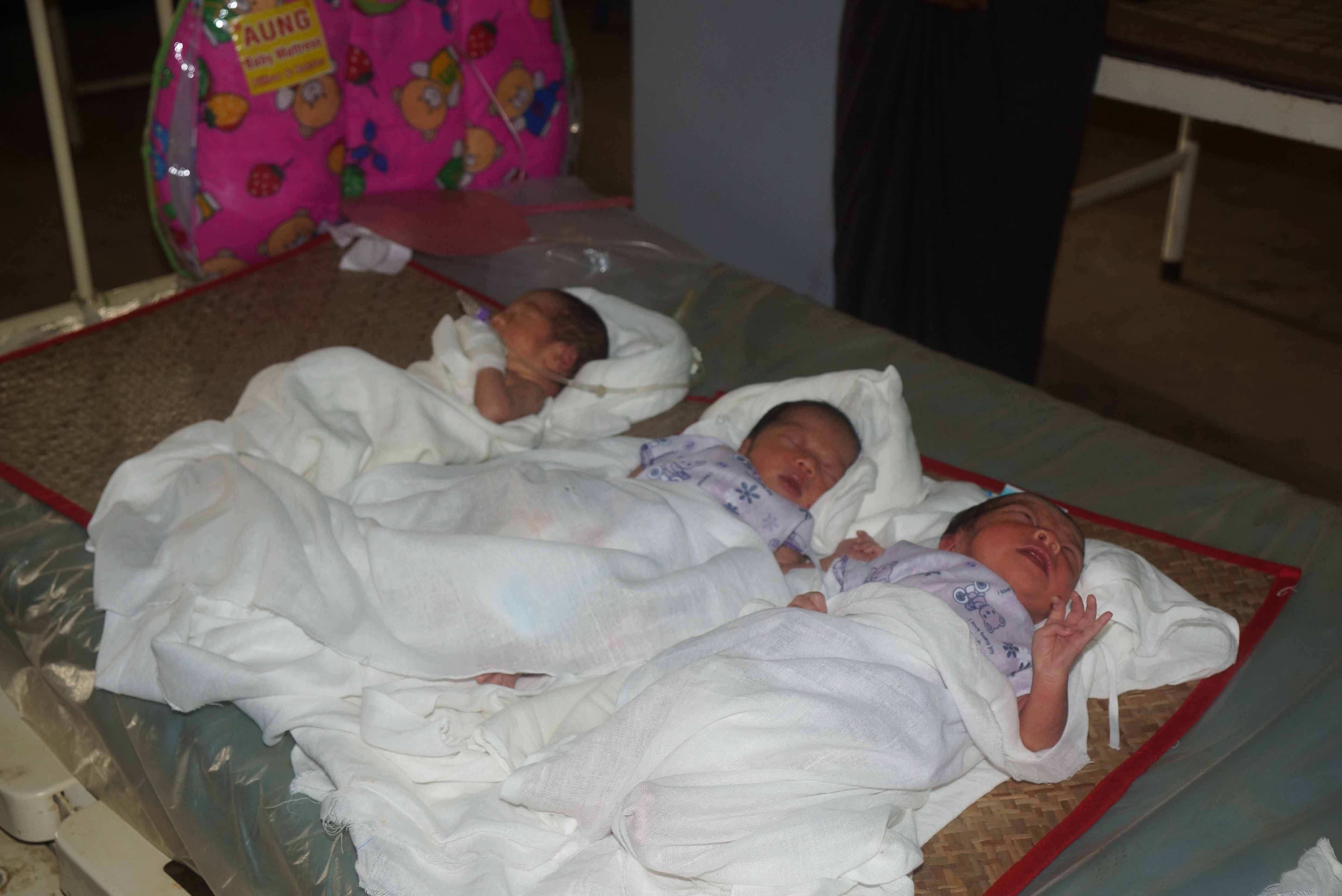 ရခိုင်ပြည်နယ်၊ ကျောက်ဖြူခရိုင်၊ အမ်းမြို့နယ်ပြည်သူ့ဆေးရုံ၌ အမွှာညီအစ်မသုံးယောက်အား မေ ၁၆ ရက် ညနေ ၄ နာရီ ၂၃ မိနစ်အချိန်တွင် သားဖွားမီးယပ်အထူးကုဆရာဝန် ဒေါက်တာလဲ့လဲ့ထွန်းနှင့် သူနာပြုဆရာမများက ကျန်းမာရေးကောင်းမွန်စွာ ခွဲစိတ်ကုသမွေးဖွားပေးခဲ့ကြောင်း သိရှိရသည်။