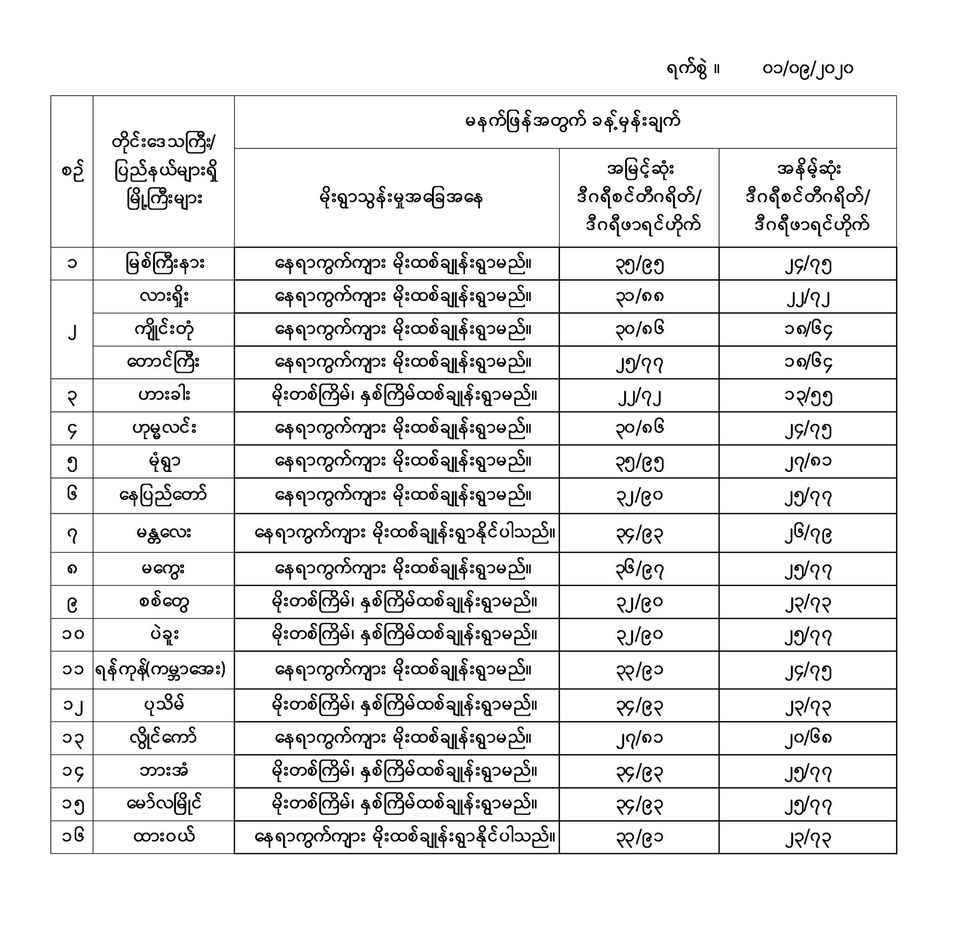 အမြင့်ဆုံးအပူချိန်၊ အနိမ့်ဆုံးအပူချိန်နှင့် မိုးလေဝသခန့်မှန်းချက်