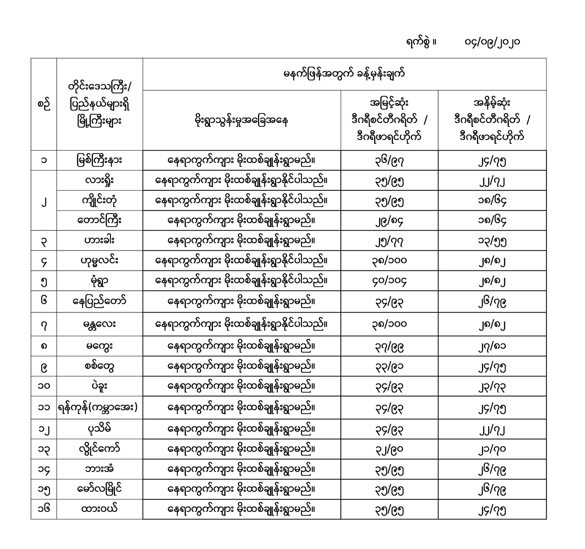 အမြင့်ဆုံးအပူချိန်၊ အနိမ့်ဆုံးအပူချိန်နှင့် မိုးလေဝသခန့်မှန်းချက်
