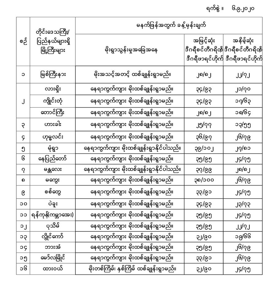 အမြင့်ဆုံးအပူချိန်၊ အနိမ့်ဆုံးအပူချိန်နှင့် မိုးလေဝသခန့်မှန်းချက်