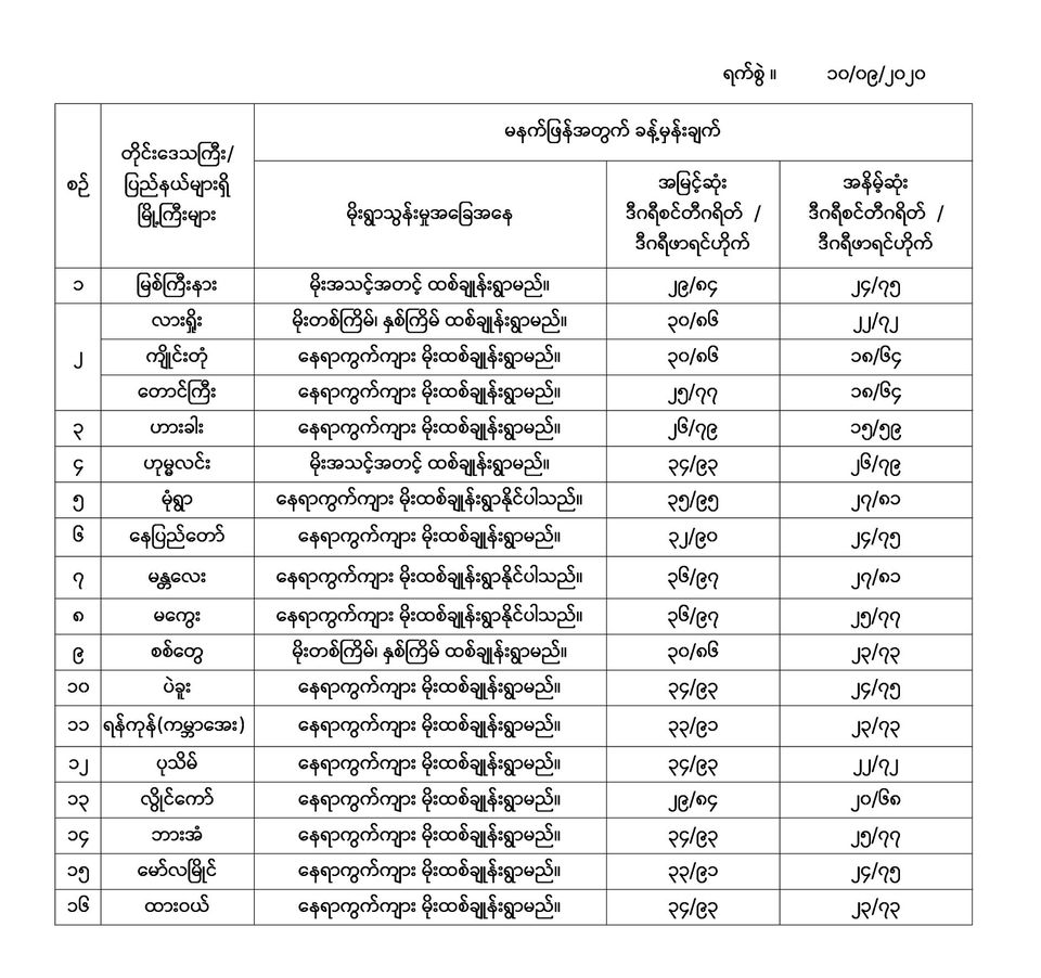 အမြင့်ဆုံးအပူချိန်၊ အနိမ့်ဆုံးအပူချိန်နှင့် မိုးလေဝသခန့်မှန်းချက်