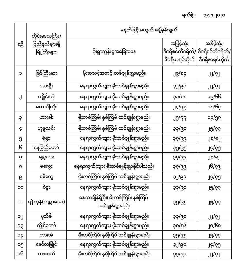 အမြင့်ဆုံးအပူချိန်၊ အနိမ့်ဆုံးအပူချိန်နှင့် မိုးလေဝသခန့်မှန်းချက်
