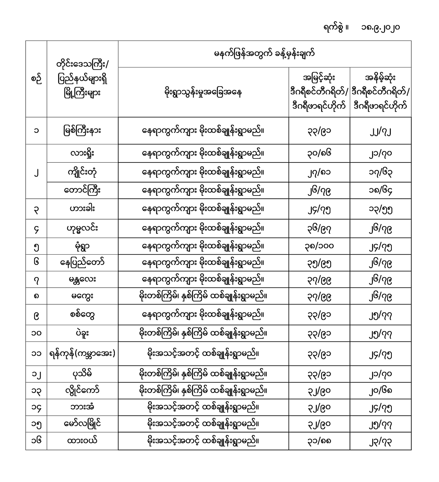 အမြင့်ဆုံးအပူချိန်၊ အနိမ့်ဆုံးအပူချိန်နှင့် မိုးလေဝသခန့်မှန်းချက်