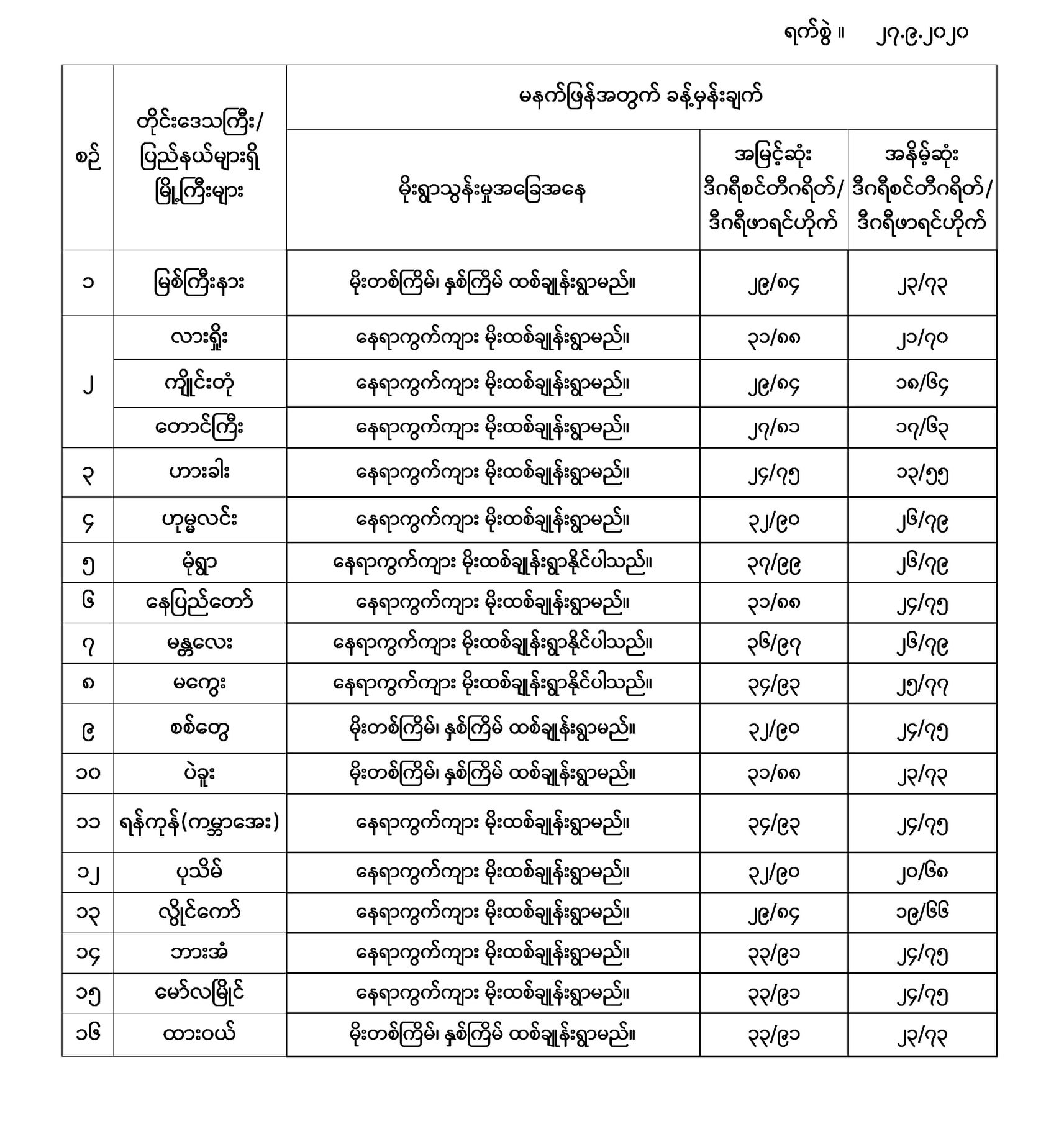 အမြင့်ဆုံးအပူချိန်၊ အနိမ့်ဆုံးအပူချိန်နှင့် မိုးလေဝသခန့်မှန်းချက်