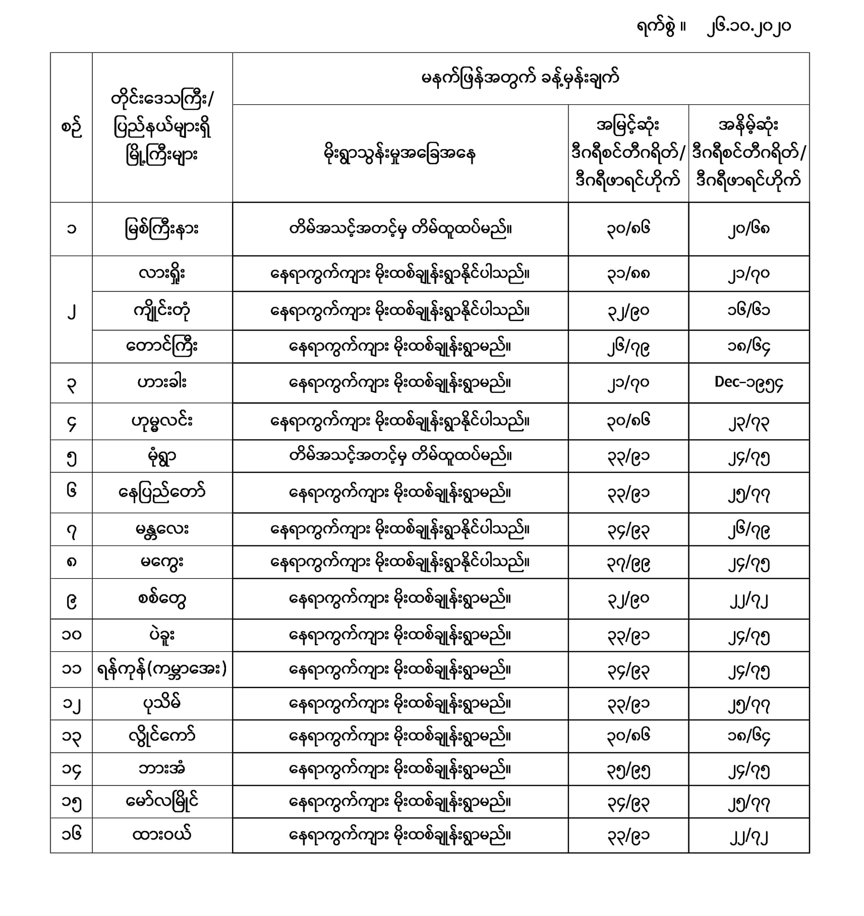 အမြင့်ဆုံးအပူချိန်၊ အနိမ့်ဆုံးအပူချိန်နှင့် မိုးလေဝသခန့်မှန်းချက်