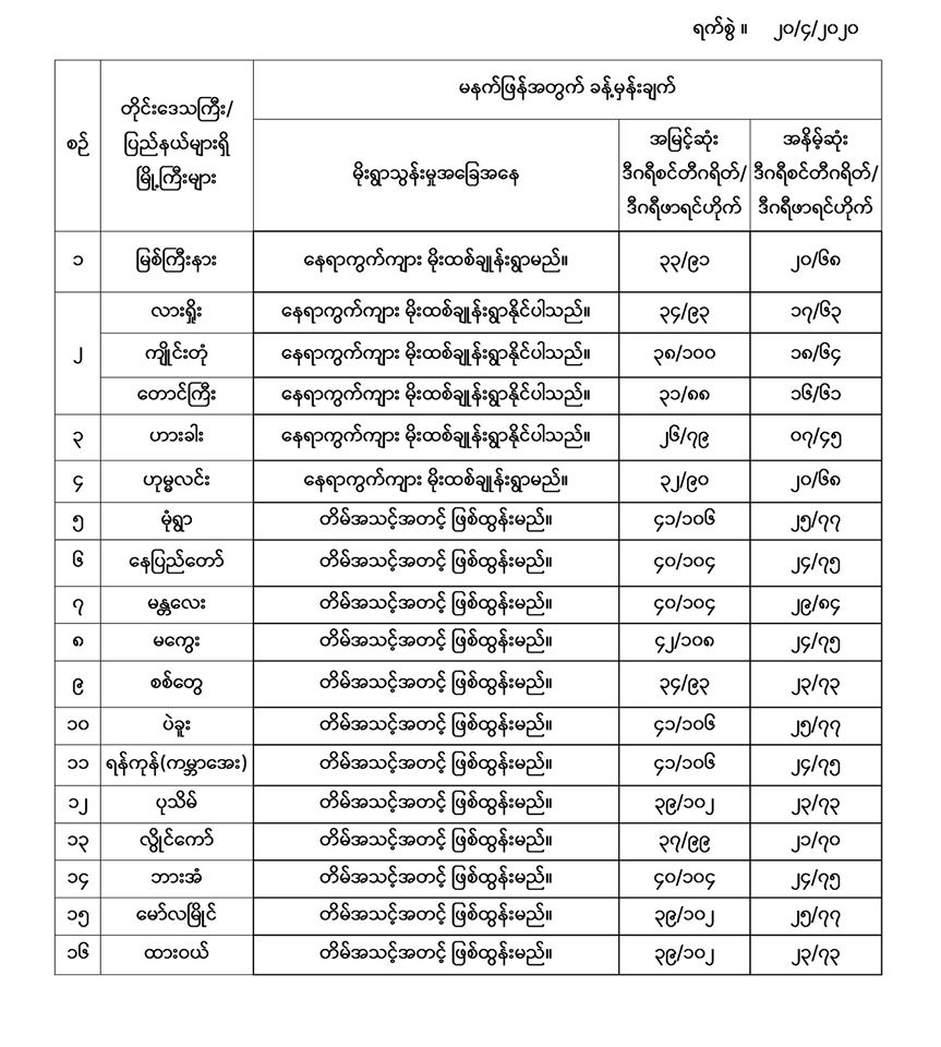 အမြင့်ဆုံးအပူချိန်၊ အနိမ့်ဆုံးအပူချိန်နှင့် မိုးလေဝသခန့်မှန်းချက်