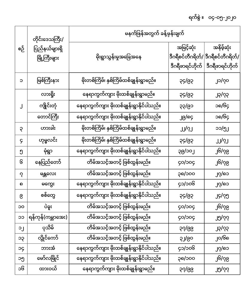 အမြင့်ဆုံးအပူချိန်၊ အနိမ့်ဆုံးအပူချိန်နှင့် မိုးလေဝသခန့်မှန်းချက်