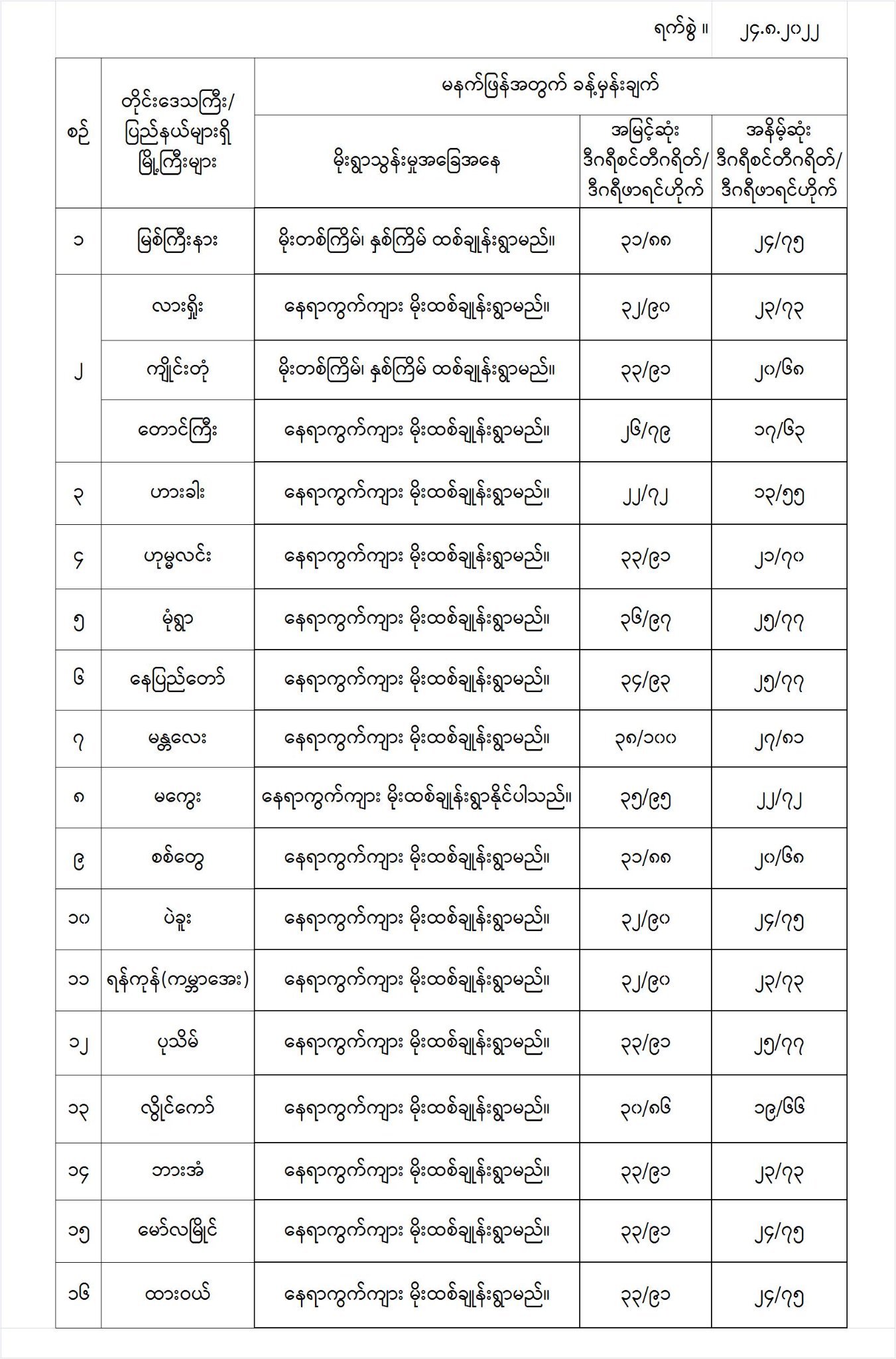 အမြင့်ဆုံးအပူချိန်၊ အနိမ့်ဆုံးအပူချိန်နှင့် မိုးလေဝသခန့်မှန်းချက်