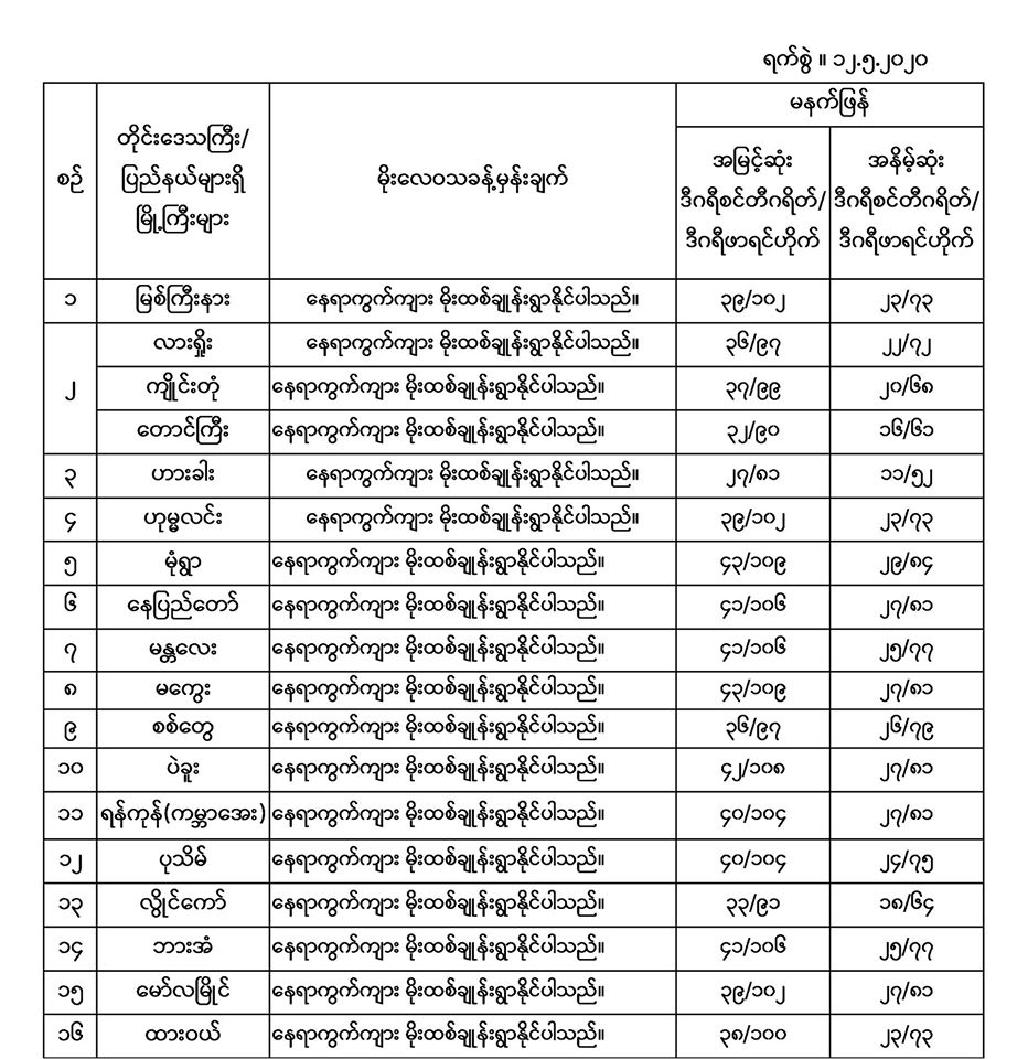 အမြင့်ဆုံးအပူချိန်၊ အနိမ့်ဆုံးအပူချိန်နှင့် မိုးလေဝသခန့်မှန်းချက်
