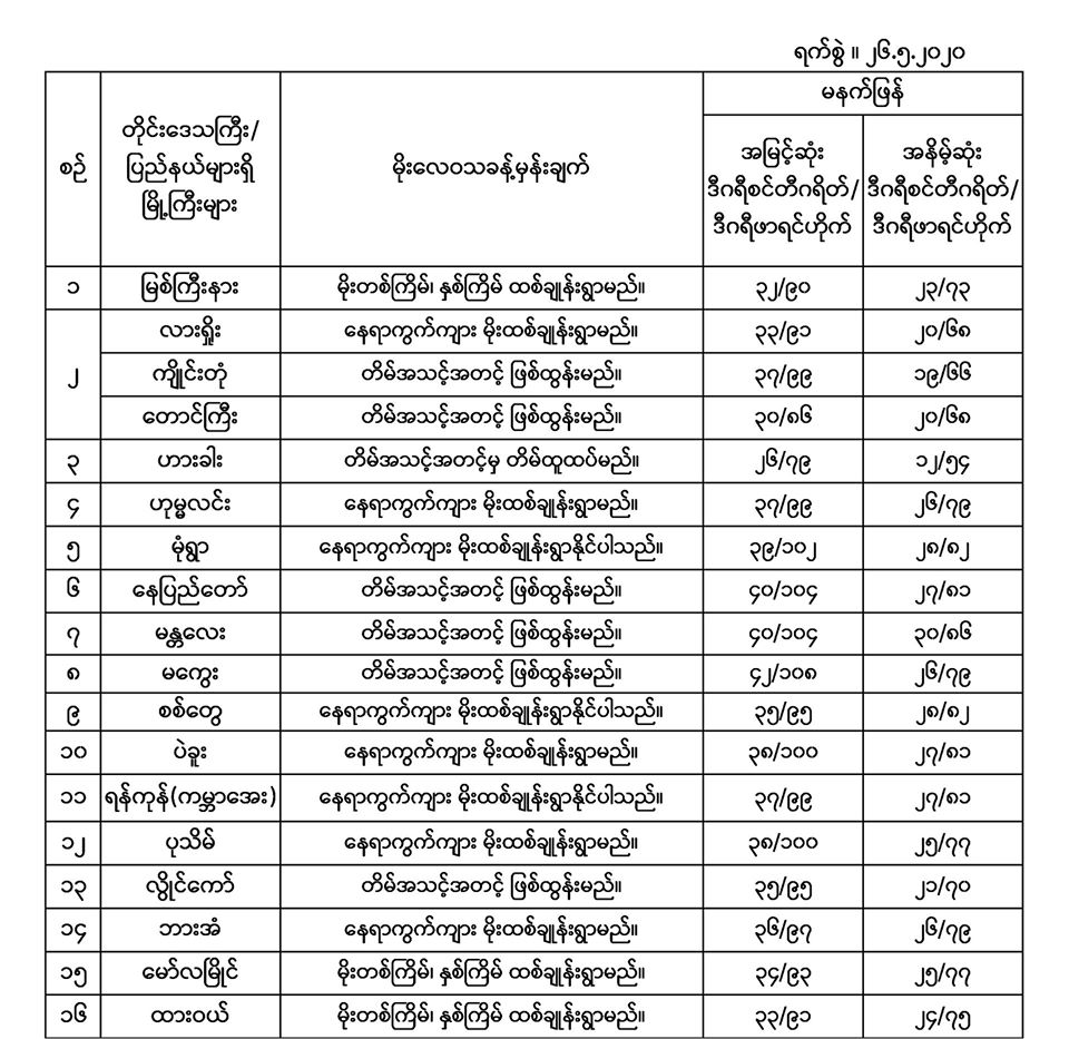 အမြင့်ဆုံးအပူချိန်၊ အနိမ့်ဆုံးအပူချိန်နှင့် မိုးလေဝသခန့်မှန်းချက်