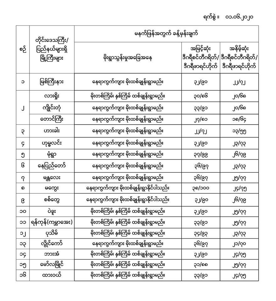 အမြင့်ဆုံးအပူချိန်၊ အနိမ့်ဆုံးအပူချိန်နှင့် မိုးလေဝသခန့်မှန်းချက်