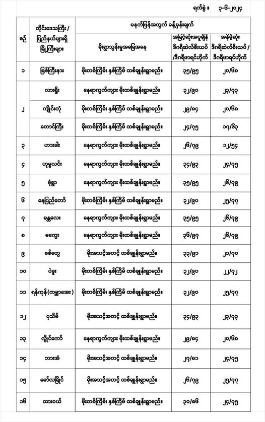 မနက်ဖြန်အတွက် တိုင်းဒေသကြီးနှင့် ပြည်နယ်များရှိ မြို့ကြီးများ၏ အမြင့်ဆုံးအပူချိန်၊ အနိမ့်ဆုံးအပူချိန်နှင့် မိုးလေဝသခန့်မှန်းချက်တို့ပဲဖြစ်ပါတယ်---