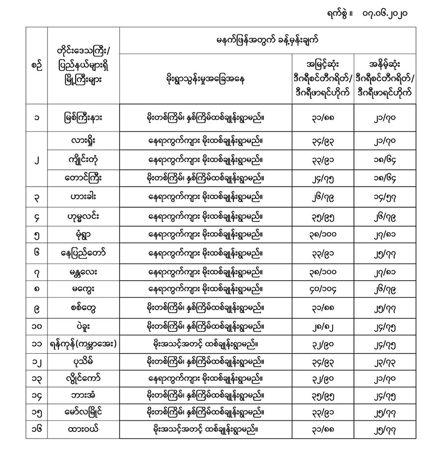 အမြင့်ဆုံးအပူချိန်၊ အနိမ့်ဆုံးအပူချိန်နှင့် မိုးလေဝသခန့်မှန်းချက်