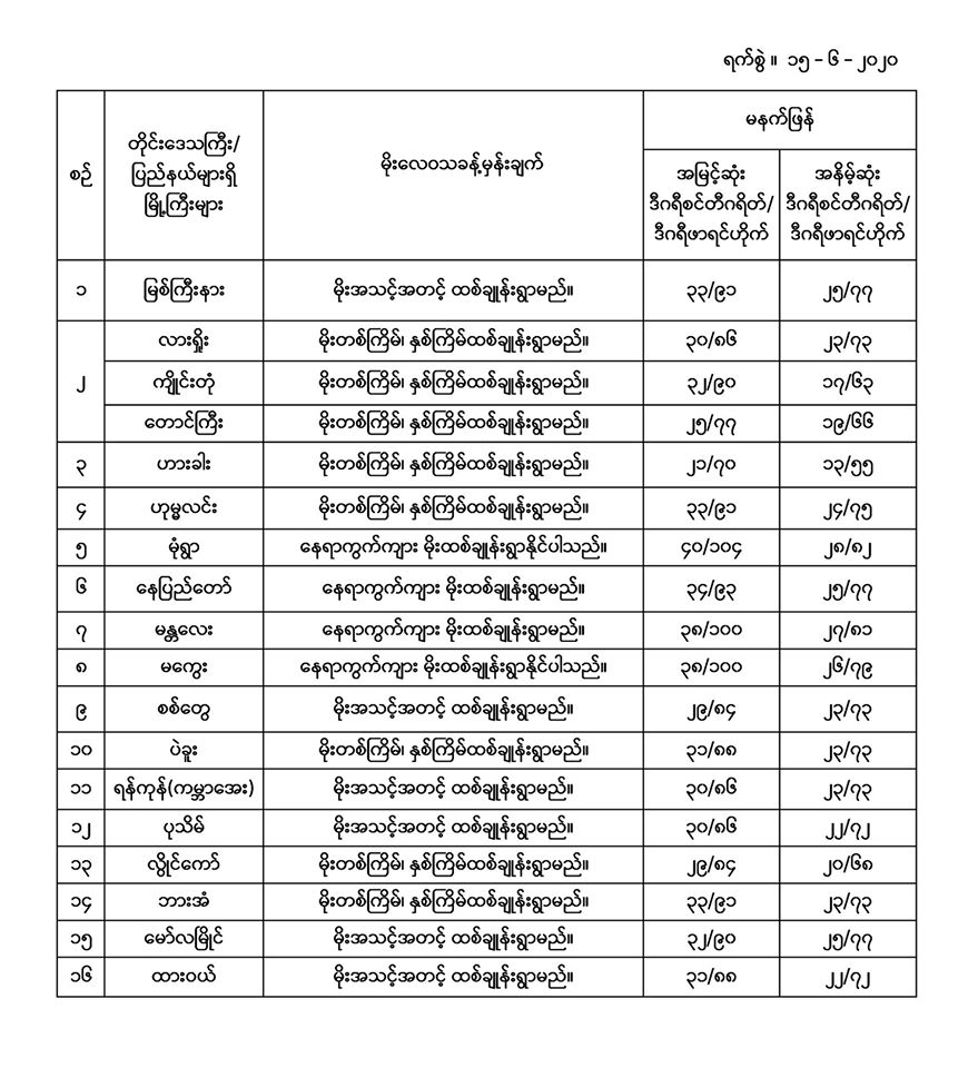 အမြင့်ဆုံးအပူချိန်၊ အနိမ့်ဆုံးအပူချိန်နှင့် မိုးလေဝသခန့်မှန်းချက်