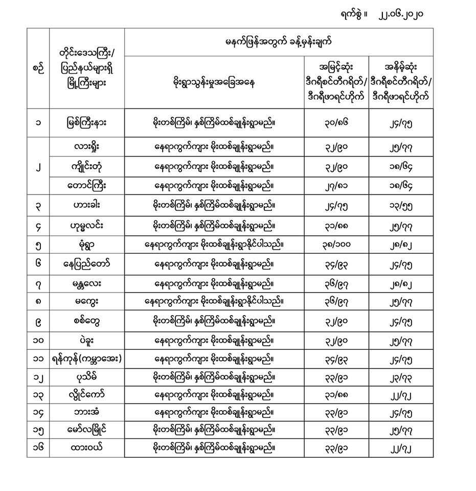 အမြင့်ဆုံးအပူချိန်၊ အနိမ့်ဆုံးအပူချိန်နှင့် မိုးလေဝသခန့်မှန်းချက်