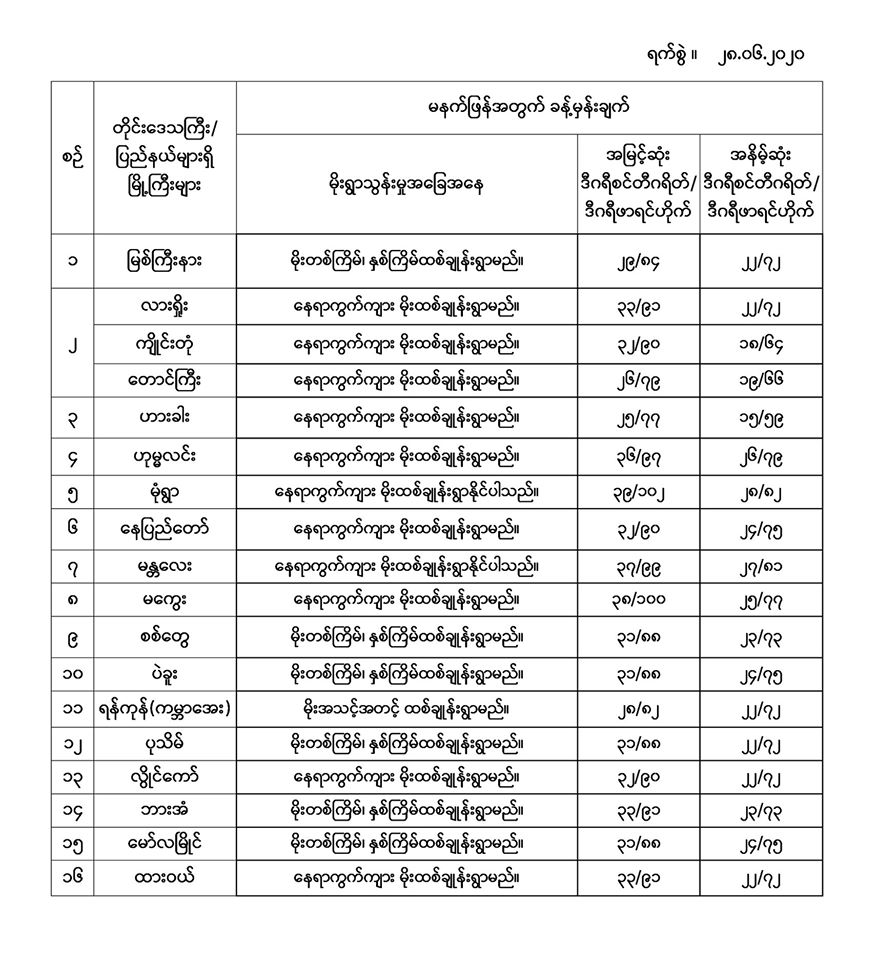အမြင့်ဆုံးအပူချိန်၊ အနိမ့်ဆုံးအပူချိန်နှင့် မိုးလေဝသခန့်မှန်းချက်
