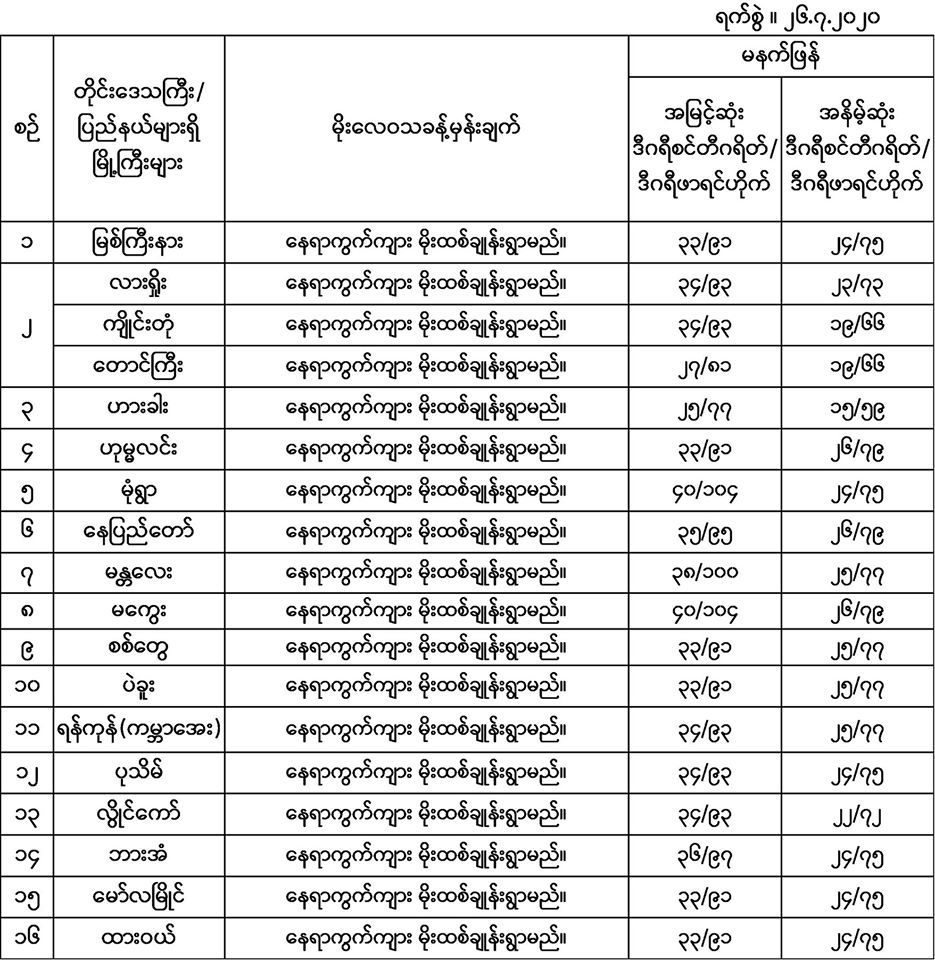 အမြင့်ဆုံးအပူချိန်၊ အနိမ့်ဆုံးအပူချိန်နှင့် မိုးလေဝသခန့်မှန်းချက်