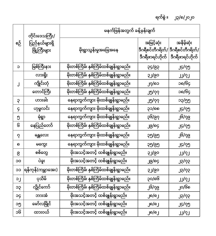 အမြင့်ဆုံးအပူချိန်၊ အနိမ့်ဆုံးအပူချိန်နှင့် မိုးလေဝသခန့်မှန်းချက်