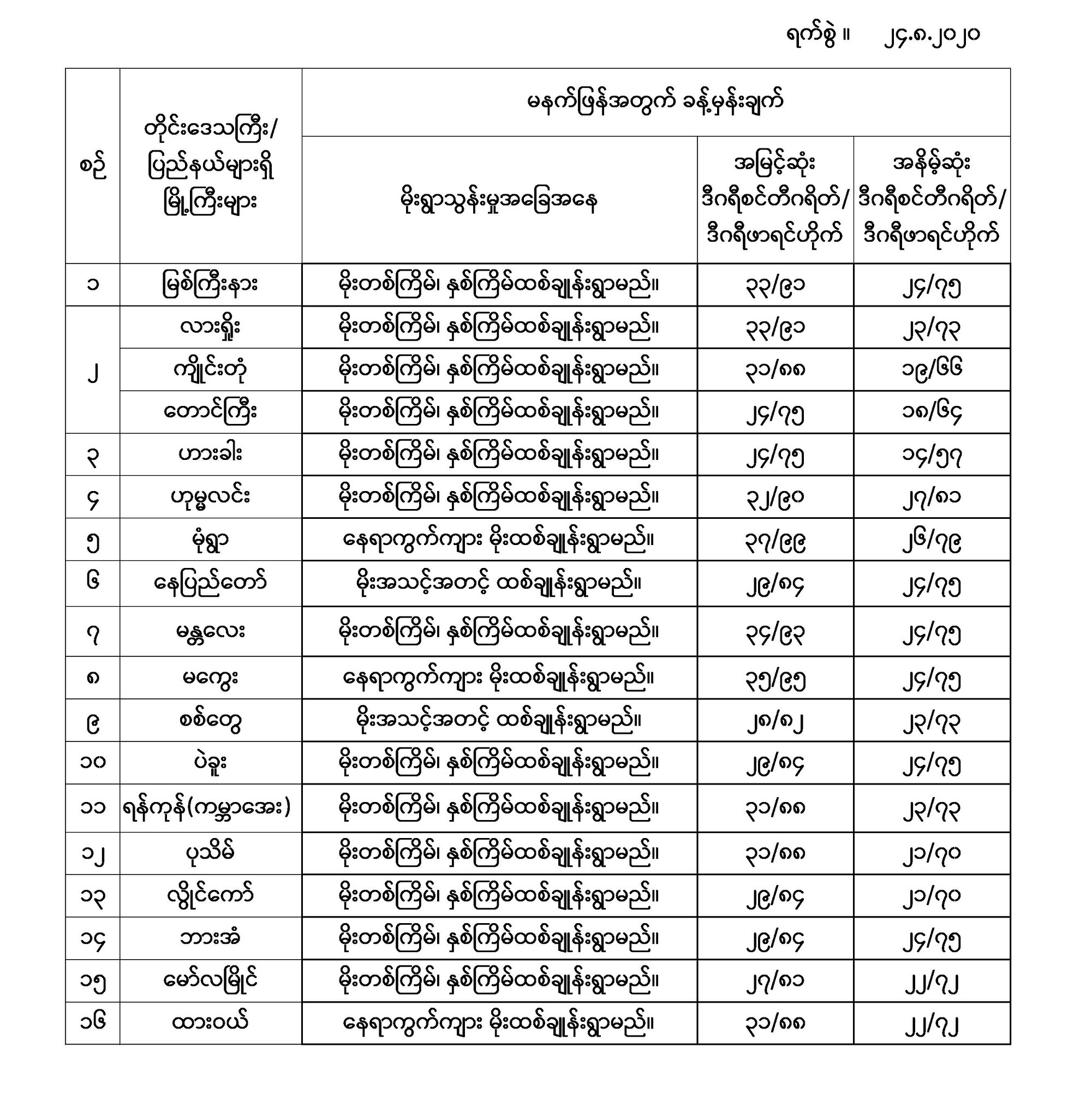 အမြင့်ဆုံးအပူချိန်၊ အနိမ့်ဆုံးအပူချိန်နှင့် မိုးလေဝသခန့်မှန်းချက်