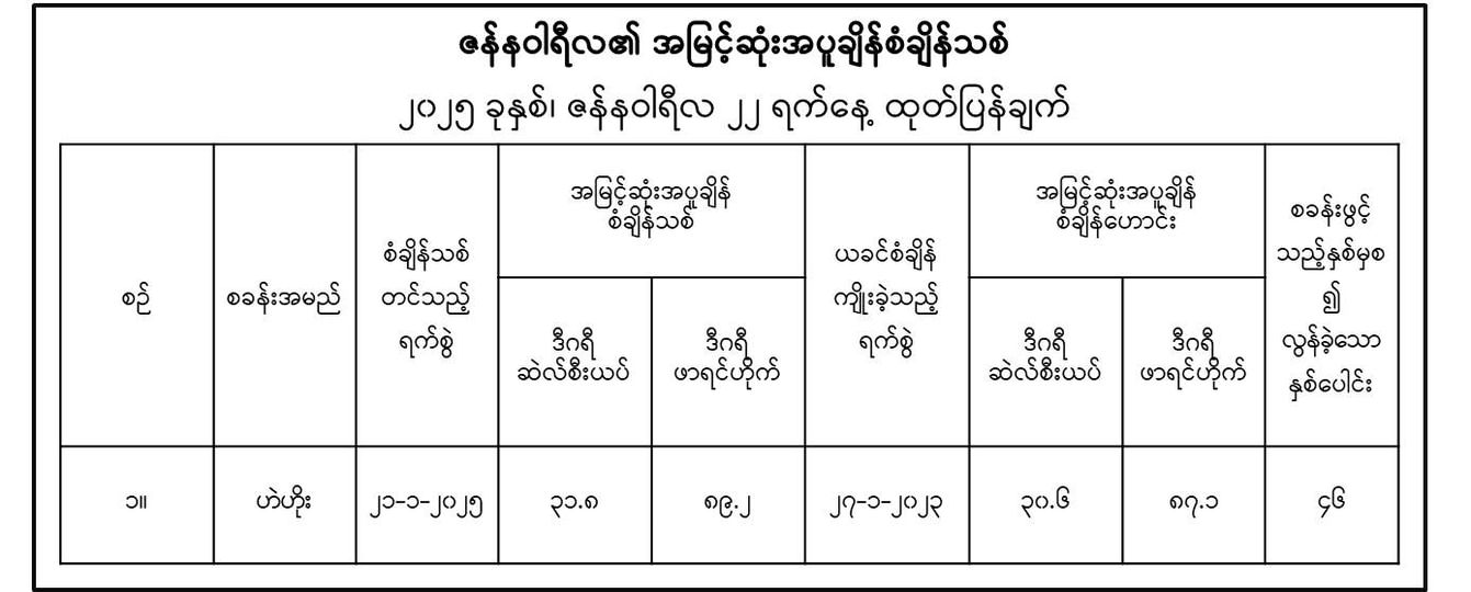 ၂၀၂၅ ခုနှစ်၊ ဇန်နဝါရီလ ၂၂ ရက်နေ့ ထုတ်ပြန်သည့် ဇန်နဝါရီလ၏ အမြင့်ဆုံးအပူချိန်စံချိန်သစ်