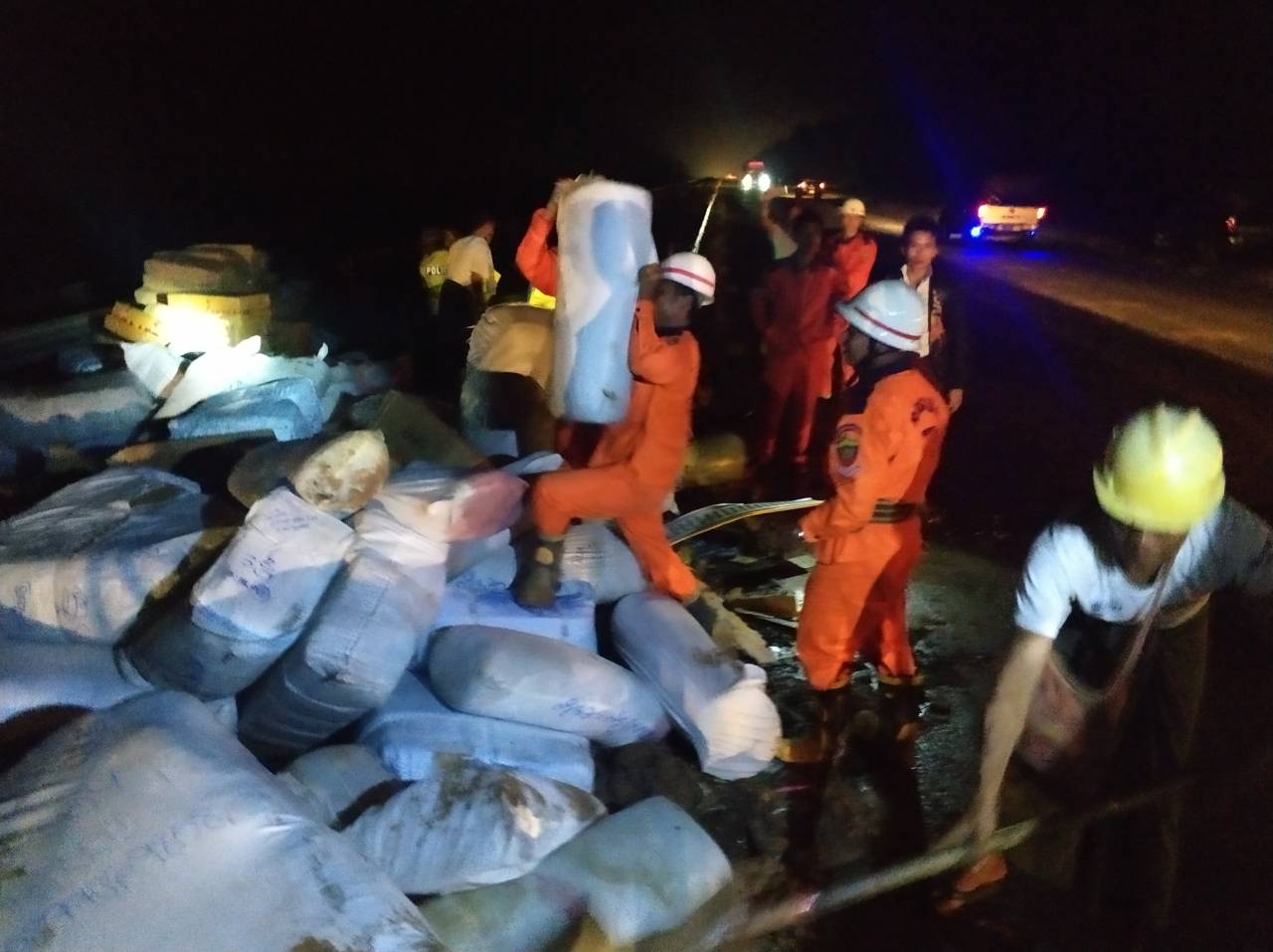ယာဉ်တိမ်းမှောက်ရာသို့ (၁၁)မိုင်အမြန်လမ်းမီးသတ်စခန်းမှ မီးငြှိမ်းသတ်ယာဉ်(၁)စီး၊ သန္ဓေမီးသတ်တပ်ဖွဲ့ဝင်(၅)ဦး၊ အမှတ်(၃)လမ်းဆုံ အမြန်လမ်းရဲတပ်ဖွဲ့စခန်းမှ ရဲတပ်ဖွဲ့ဝင်များဖြင့် ကယ်ဆယ်ရေးလုပ်ငန်းများ ဆောင်ရွက်ခဲ့ပြီး လူထိခိုက်ဒဏ်ရာရရှိမှုမရှိကြောင်း မြန်မာနိုင်ငံမီးသတ်တပ်ဖွဲ့မှ သိရသည်။