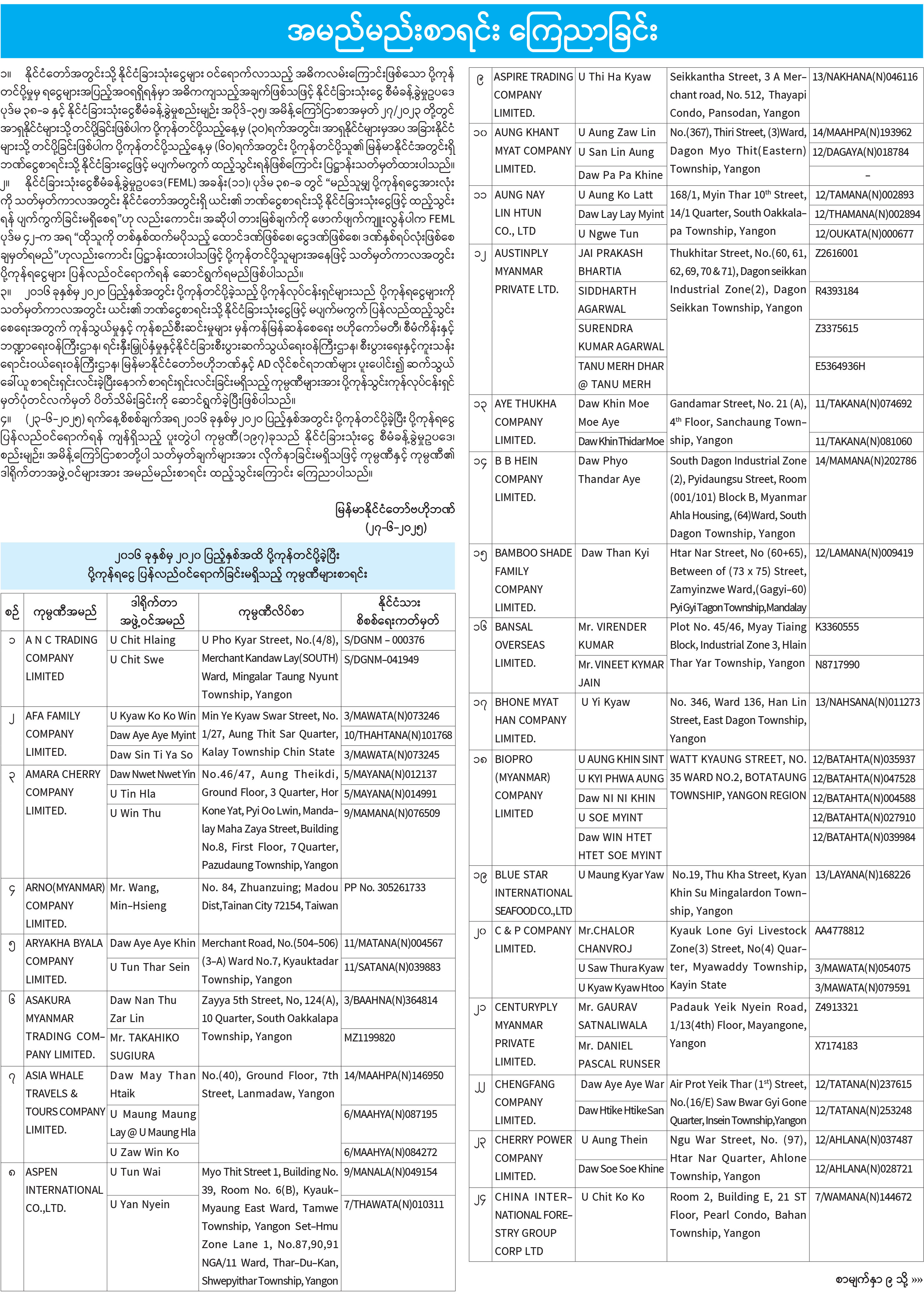 အမည်မည်းစာရင်း ကြေညာခြင်း