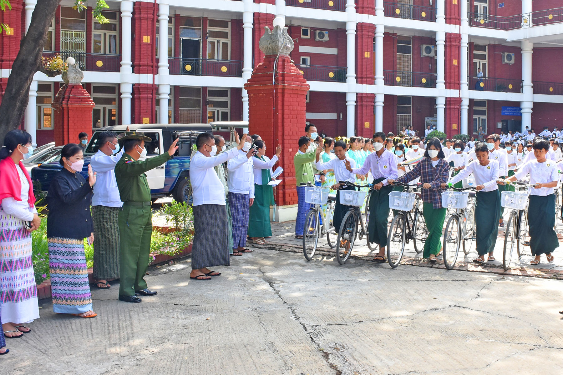 ထို့နောက် တိုင်းဒေသကြီးဝန်ကြီးချုပ်နှင့် တာဝန်ရှိသူများက တက္ကသိုလ်ဝင် စာမေးပွဲတွင် ထူးချွန်စွာ အောင်မြင်ခဲ့ကြသည့် ကျောင်းသားကျောင်းသူ (၅၆) ဦးကို ဂုဏ်ပြုဆုငွေနှင့် မှတ်တမ်း လွှာများကိုလည်းကောင်း၊ အခြေခံပညာကျောင်းများမှ ဆရာဆရာမများအတွက် ကျောင်းစိမ်း ဝတ်စုံများကိုလည်းကောင်း၊ ကျောင်းသားကျောင်းသူ (၁၀၀) အတွက် စက်ဘီး အစီး (၁၀၀) ကိုလည်းကောင်း ပေးအပ်ခဲ့ကြောင်း သိရသည်။