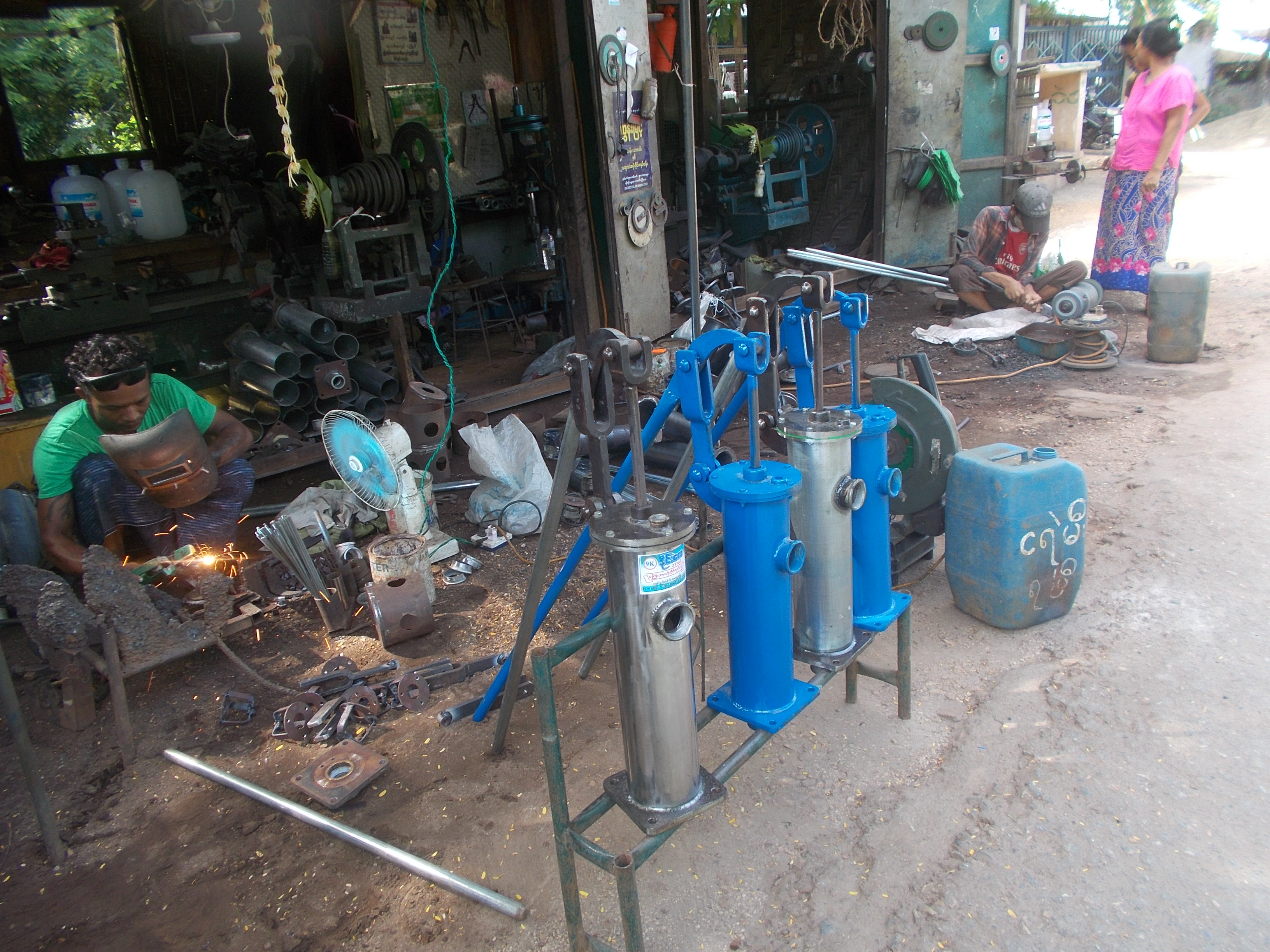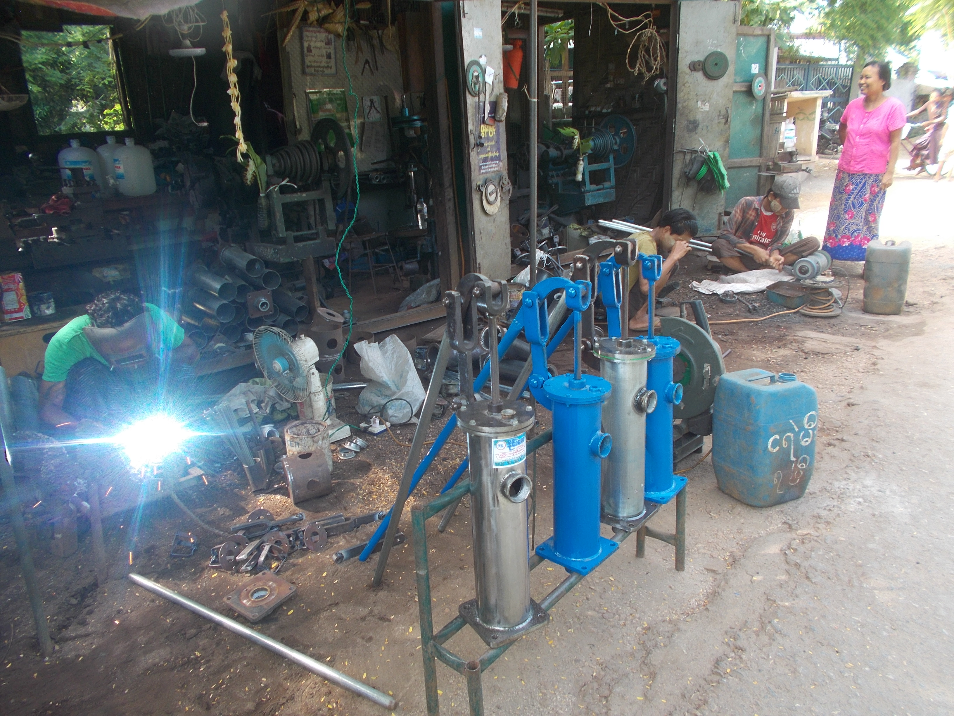 ရေဘုံပိုင် ပြုလုပ်ရာတွင် သွပ်အိုး၊ သံအိုး၊ စတီးအိုး သုံးမျိုး ပြုလုပ်ရောင်းချလျက်ရှိပြီး ကုန်ကြမ်းကို မန္တလေးမြို့မှ ဝယ်ယူပြုလုပ်လျက်ရှိသည်။ ရေဘုံပိုင်ပြုလုပ်ရန်အတွက် လေးလက်မအရွယ် ပေ ၂၀ အရှည်ပိုက်များကို ဝယ်ယူကာ လိုအပ်သည့် အတိုင်းအတာ ရအောင် ဖြတ်တောက်ပြုလုပ်ကြရသည်။ ပေ ၂၀ အရှည် ပိုက်တစ်ခုလျှင် ငွေကျပ် ခြောက် သောင်းကျော်မှ ခုနှစ်သောင်းအထိ ပေးရသည်။