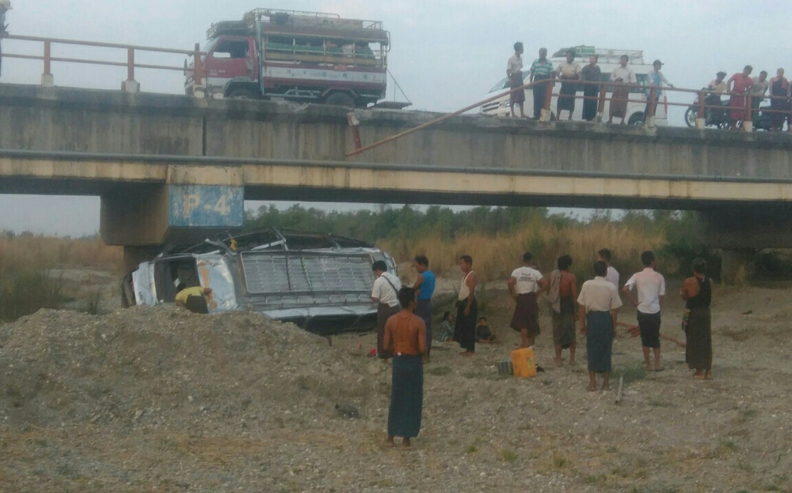 မကွေးတိုင်းဒေသကြီး ပေါက်မြို့နယ်၌ ပေါက်ဘက်မှ မန္တလေးဘက်သို့ ယာဉ်မောင်း ဦးဇော်မင်းထက် မောင်းနှင်လာသော ပေါက်ရွှေပြည်ခရီးသည်တင် မှန်လုံယာဉ်တစ်စီးသည် ယနေ့ နံနက်ပိုင်းက အမှတ်(၁) ပေါက်တံတားအပေါ်တွင် ကားဘယ်ဘက်ရှေ့ဘီးပေါက်ကာ အရှိန်မထိန်းနိ်ုင်၍ တံတားတိုင်အမှတ် P3 နှင့် P4 အကြား တံတားဘယ်ဘက်ခြမ်းရှိ လက်ရန်းတိုင်များအား ဝင်တိုက်မိပြီး တံတားအောက် အနက်ပေ ၁၅ ခန့်ရှိ ယောချောင်းအတွင်းသို့ ပြုတ်ကျတိမ်းမှောက်ခဲ့ကြောင်း သိရသည်။