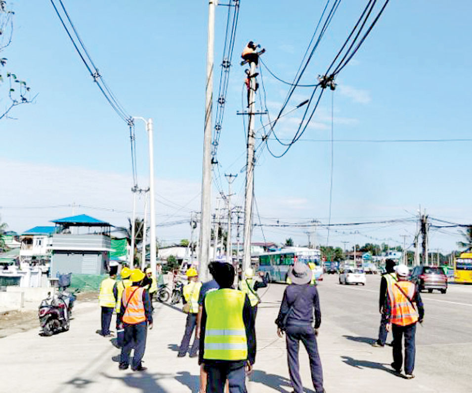 လျှပ်စစ်စွမ်းအားဝန်ကြီးဌာန ရန်ကုန်လျှပ်စစ်ဓာတ်အားပေးရေး ကော်ပိုရေးရှင်းဥက္ကဋ္ဌ ဦးအောင်ကျော်ဦးသည် ရုံးချုပ်နှင့် ခရိုင်တို့မှ တာဝန်ရှိသူများနှင့်အတူ နိုဝင်ဘာ ၁၄ ရက် နံနက်ပိုင်းက ရန်ကုန်တိုင်းဒေသကြီး ရွှေပြည်သာမြို့နယ်ရှိ အမှတ်(၄)လမ်းမကို (၈)လမ်းသွား လမ်းမကြီးအဖြစ် လမ်းတိုးချဲ့ရာတွင် မလွတ်ကင်းသော ဓာတ်အားလိုင်းများ ရွှေ့ပြောင်းတည်ဆောက်ရေးလုပ်ငန်းများ ဆောင်ရွက်ပြီးစီးမှု အခြေအနေများကို ကွင်းဆင်းစစ်ဆေးသည်။