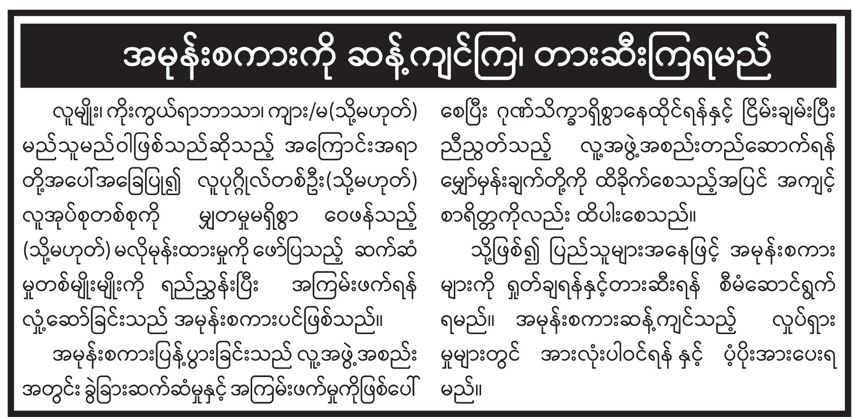 သတင်းဆောင်းပါးများ