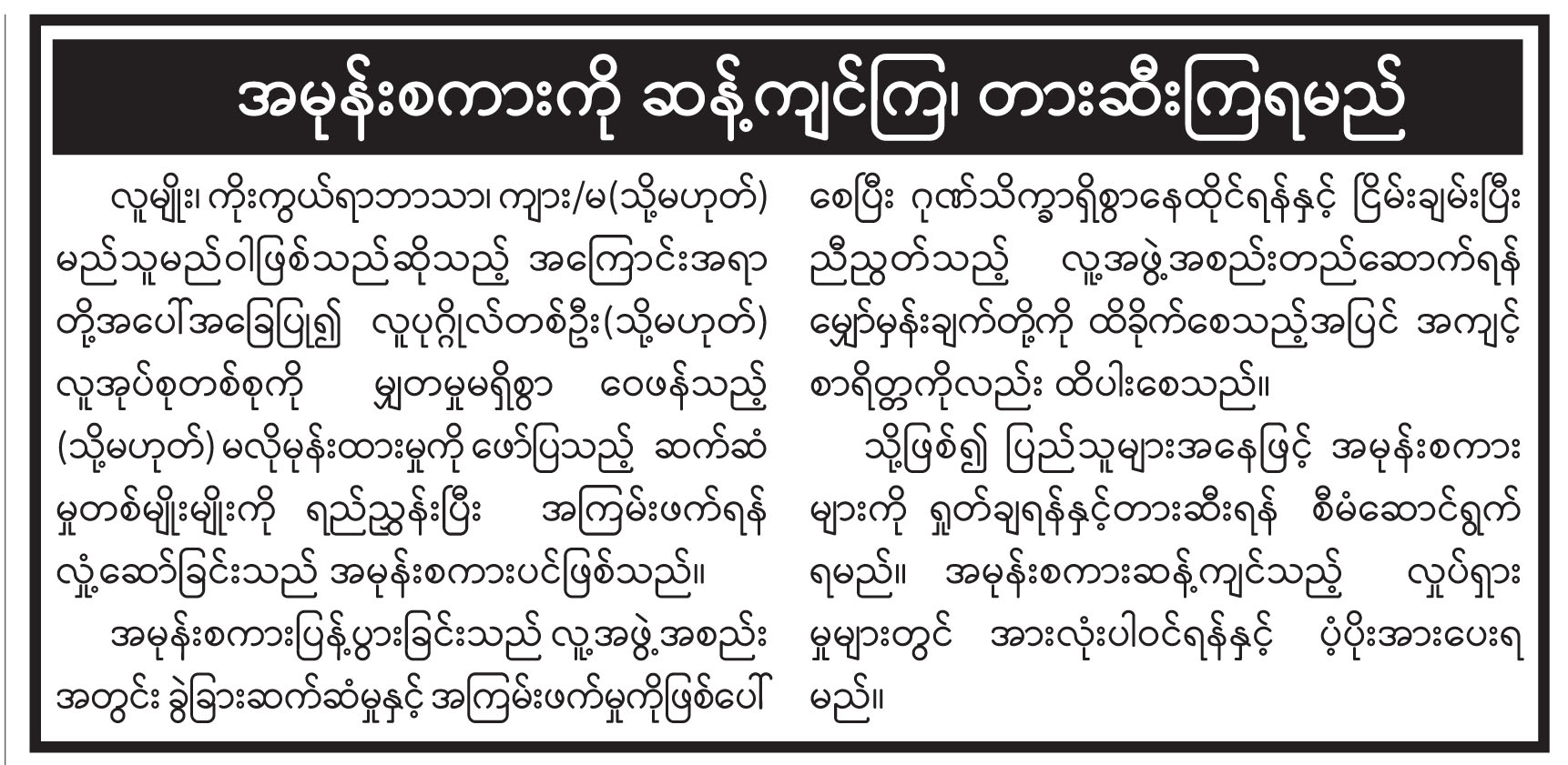 အမုန်းစကားကို ဆန့်ကျင်ကြ၊ တားဆီးကြရမည်