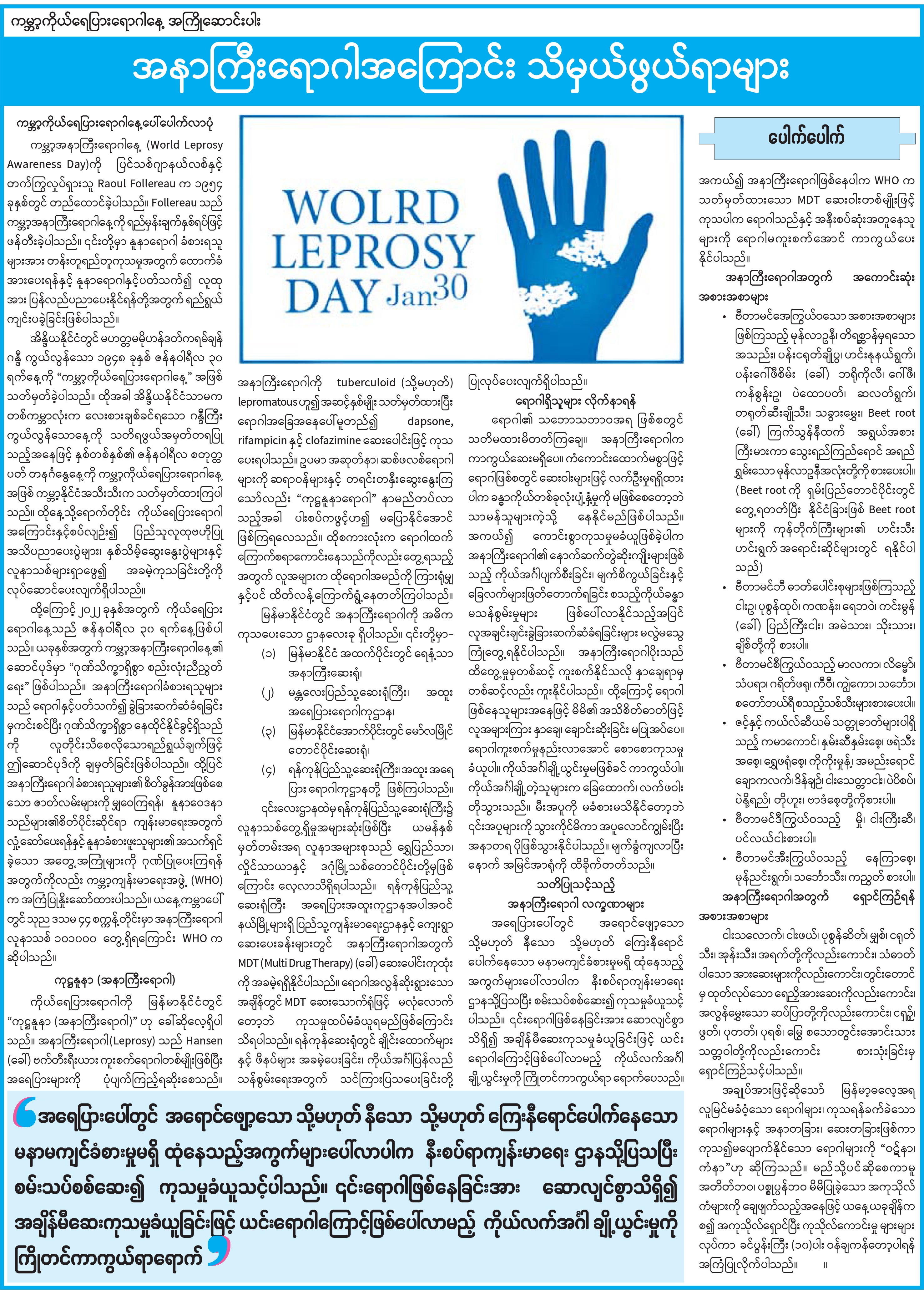 အနာကြီးရောဂါအကြောင်း သိမှတ်ဖွယ်ရာများ