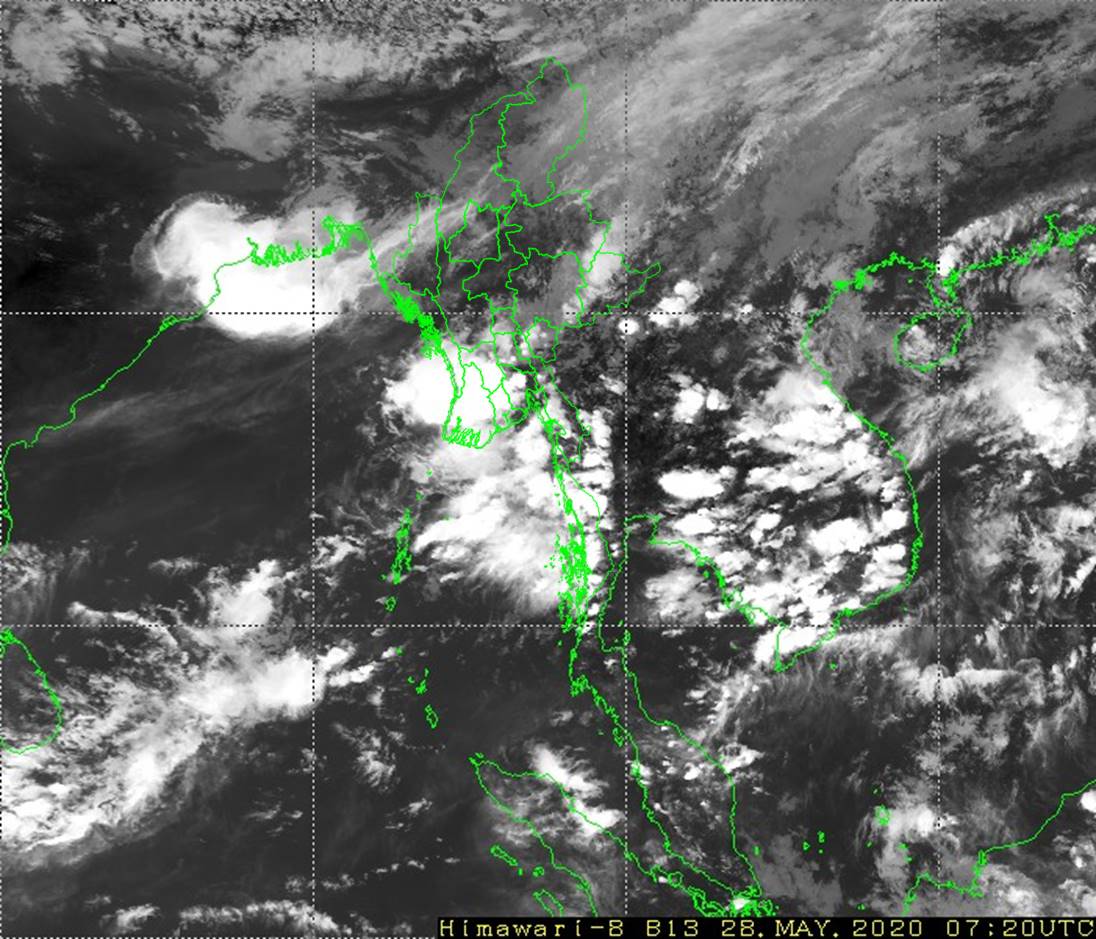 ဘင်္ဂလားပင်လယ်အော်အခြေအနေ။ ကပ္ပလီပင်လယ်ပြင်နှင့် ဘင်္ဂလားပင်လယ်အော်အရှေ့တောင်ပိုင်းတို့တွင် မုတ်သုံလေ အားအနည်းငယ် ရှိနေပါသည်။ ဘင်္ဂလားပင်လယ်အော်အနောက်အလယ်ပိုင်းတွင် တိမ်အနည်းငယ် ဖြစ်ထွန်းနေပြီး၊ ကျန်ဘင်္ဂလားပင်လယ်အော်တွင် တိမ်အသင့်အတင့် ဖြစ်ထွန်းနေပါသည်။