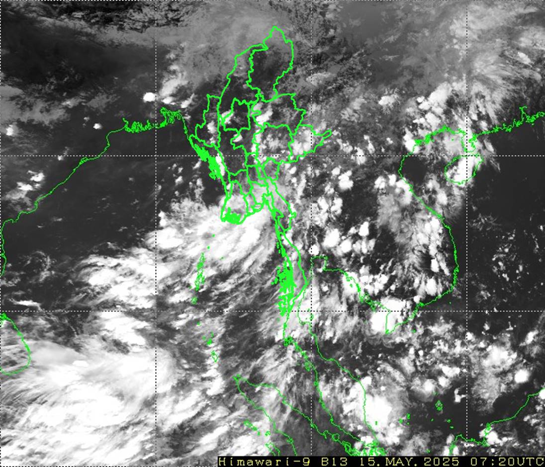 ယမန်နေ့နံနက် ၀၉:၃၀ နာရီအချိန်မှ ယနေ့နံနက် ၀၉:၃၀ နာရီအချိန်အထိ မိုးလေဝသတိုင်းထွာချက်အကျဉ်းချုပ်။ လွန်ခဲ့သော ၂၄ နာရီအတွင်းက ရခိုင်ပြည်နယ်တွင် တိမ်အသင့်အတင့် ဖြစ်ထွန်းခဲ့ပါသည်။ မန္တလေးတိုင်းဒေသကြီး၊ မကွေးတိုင်းဒေသကြီး၊ ချင်းပြည်နယ်နှင့် ရှမ်းပြည်နယ်(မြောက်ပိုင်း)တို့တွင် နေရာကွက်ကျား၊ နေပြည်တော်၊ စစ်ကိုင်းတိုင်းဒေသကြီးအောက်ပိုင်းနှင့် ကယားပြည်နယ်တို့တွင် နေရာကျဲကျဲ၊ ပဲခူးတိုင်းဒေသကြီးတွင် နေရာစိပ်စိပ်နှင့် ကျန်တိုင်းဒေသကြီးနှင့် ပြည်နယ်တို့တွင် နေရာအနှံ့အပြား မိုးထစ်ချုန်းရွာခဲ့ပြီး၊ ဧရာဝတီတိုင်းဒေသကြီးတွင် နေရာကွက်၍ မိုးကြီးခဲ့ပါသည်။ နေ့အပူချိန်များမှာ ချင်းပြည်နယ်တွင် မေလ၏ ပျမ်းမျှအပူချိန်ထက် ၂ ဒီဂရီဆဲလ်စီးယပ် ပိုခဲ့ပြီး၊ ရန်ကုန်တိုင်းဒေသကြီး၊ ဧရာဝတီတိုင်းဒေသကြီးနှင့် ရှမ်းပြည်နယ်(အရှေ့ပိုင်း)တို့တွင် မေလ၏ ပျမ်းမျှအပူချိန်တို့အောက် ၂ ဒီဂရီဆဲလ်စီးယပ်နှင့် ရှမ်းပြည်နယ်(တောင်ပိုင်း)တွင် မေလ၏ ပျမ်းမျှအပူချိန်အောက် ၃ ဒီဂရီဆဲလ်စီးယပ်လျော့နည်းခဲ့ကာ၊ ကျန်တိုင်းဒေသကြီးနှင့် ပြည်နယ်တို့တွင် မေလ၏ ပျမ်းမျှအပူချိန်ခန့်သာ ရှိခဲ့ပါသည်။ ၁၄-၅-၂၀၂၅ ရက်နေ့တွင် ဖြစ်ပေါ်ခဲ့သော ထူးခြားသည့် နေ့အပူချိန်များမှာ ချောက်မြို့တွင် ၄၁.၈ ဒီဂရီဆဲလ်စီးယပ်၊ မြင်းမူမြို့တွင် ၄၀.၃ ဒီဂရီဆဲလ်စီးယပ်၊ အောင်လံမြို့နှင့် ဆင်ဖြူကျွန်းမြို့တို့တွင် ၃၉.၀ ဒီဂရီဆဲလ်စီးယပ်စီ၊ မြင်းခြံမြို့တွင် ၃၈.၅ ဒီဂရီဆဲလ်စီးယပ်၊ မကွေးမြို့တွင် ၃၈.၂ ဒီဂရီဆဲလ်စီးယပ်၊ ညောင်လေးပင်မြို့၊ ပခုက္ကူမြို့နှင့် ရွှေဘိုမြို့တို့တွင် ၃၈.၀ ဒီဂရီဆဲလ်စီးယပ်စီနှင့် ကလေးဝမြို့တွင် ၃၇.၈ ဒီဂရီဆဲလ်စီးယပ်တို့ ဖြစ်ကြပါသည်။ မှတ်သားဖွယ်ရာ မိုးရေချိန်များမှာ မြန်အောင်မြို့တွင် ၃.၅၁ လက်မ၊ ဟိုင်းကြီးကျွန်းမြို့တွင် ၃.၃၉ လက်မ၊ ကျိုက္ခမီမြို့တွင် ၂.၀၁ လက်မ၊ ရေးမြို့တွင် ၁.၉၃ လက်မ၊ ဝက်ထီးကန်(လေးထပ်ပြင်)နှင့် ငါးသိုင်းချောင်းမြို့တို့တွင် ၁.၅၇ လက်မစီ၊ ဟဲဟိုးမြို့တွင် ၁.၅၄ လက်မ၊ ငပုတောမြို့တွင် ၁.၅၀ လက်မ၊ နေပြည်တော်(ဇမ္ဗူသီရိမြို့နယ်) နှင့် မော်လမြိုင်မြို့တို့တွင် ၁.၄၂ လက်မစီနှင့် ညောင်ရွှေမြို့တွင် ၁.၂၆ လက်မတို့ ဖြစ်ကြပါသည်။