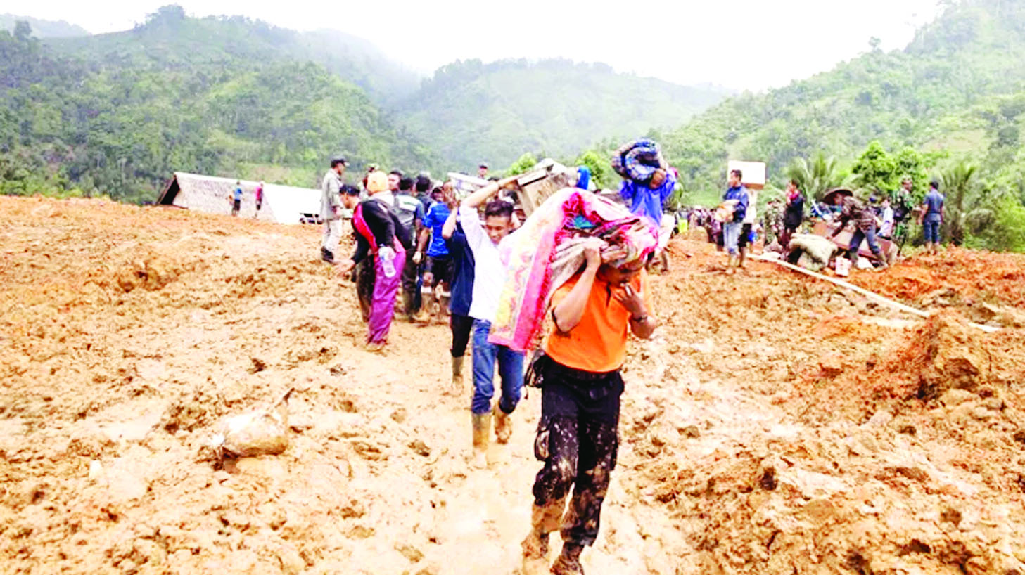 တပ်မတော်နှင့် ရဲတပ်ဖွဲ့ဝင်များ ပူးပေါင်းပါဝင်သော ပူးတွဲကယ်ဆယ်ရေးအဖွဲ့တစ်ဖွဲ့သည် ကယ်ဆယ်ရေး လုပ်ငန်းများကို ဆက်လက်လုပ်ဆောင်လျက်ရှိပြီး ဆိုးရွားသော ရာသီဥတုကို အန်တုလျက် ပျောက်ဆုံးသူများကို ရှာဖွေလျက်ရှိသည်။