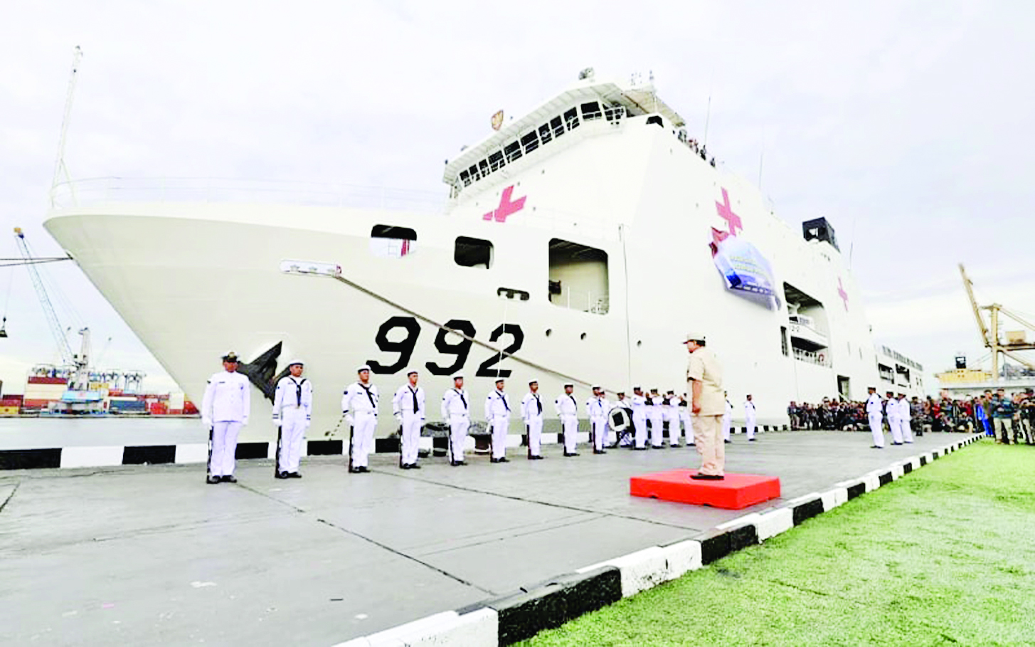 အင်ဒိုနီးရှား ဆေးရုံသင်္ဘောပေါ်တွင် သင်္ဘောသား ၂၀၀ ကျော်နှင့်အတူ ဆေးဝါးများ၊ စောင်များ၊ အဝတ်များ၊ နို့ထွက်ပစ္စည်းများ၊ ဘီစကွတ်များ၊ သောက်သုံးရေနှင့် ခေါက်ဆွဲခြောက်များအပါအဝင် လူသားချင်းစာနာထောက်ထားမှုဆိုင်ရာအကူအညီများ ပါရှိကြောင်း သိရသည်။