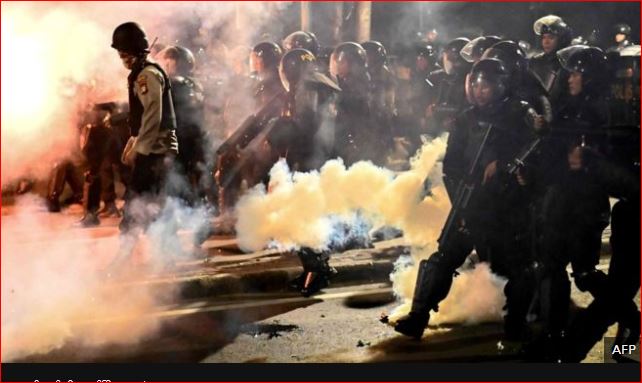 ဂျကာတာမြို့လယ်ခေါင်တွင် ရဲတပ်ဖွဲ့က ဆန္ဒပြသူများကို မျက်ရည်ယိုဗုံးနှင့် ရာဘာကျည်ဆံများ အသုံးပြု ဖြိုခွင်းခဲ့သည်။